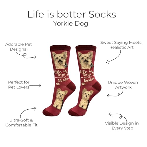 Description Introducing our collection of adorable and vibrant pet lover socks designed exclusively for pet lovers! These funny socks are the epitome of cuteness and novelty, guaranteed to bring a smile to your face. Big image of dog head woven on both sides on the socks and full body image woven on the bottom of the socks with a cute saying that says life is better with Dog. These socks are made in South Korea, These funny socks are made from 200 needle count machines which give life-like detail of your favorite pet. Step up your sock game with our adorable and hilarious Dog Socks, designed especially for pet lovers! These novelty socks are the perfect addition to your collection, featuring cute and silly designs that are bound to make you smile. Made with high-quality materials, these fun socks offer both comfort and style. They add a playful and fashionable touch to your everyday outfits, whether you're dressing up or keeping it casual. Whether you're a dog mom, a dog dad, or simply a dog lover, these socks are a must-have. With their delightful designs and comfortable fit, these socks are a fashionable treat for pet lovers and make great novelty gifts and dog mom gifts.