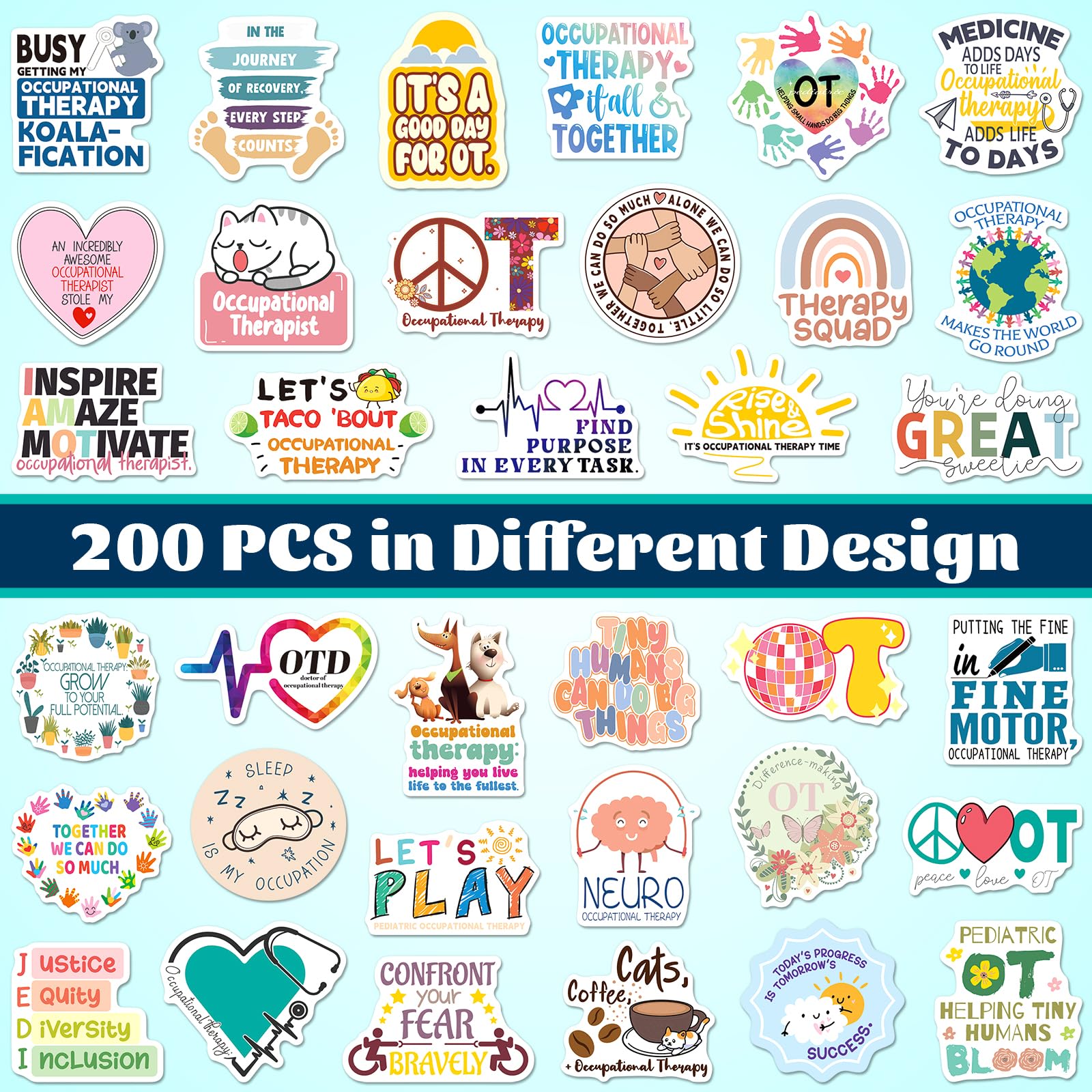 Unique OT Stickers Pack: Each set includes 200 occupational therapy stickers, with no duplicates. The designs feature healthy, positive themes related to occupational therapy, perfect for anyone involved in or enthusiastic about this field
