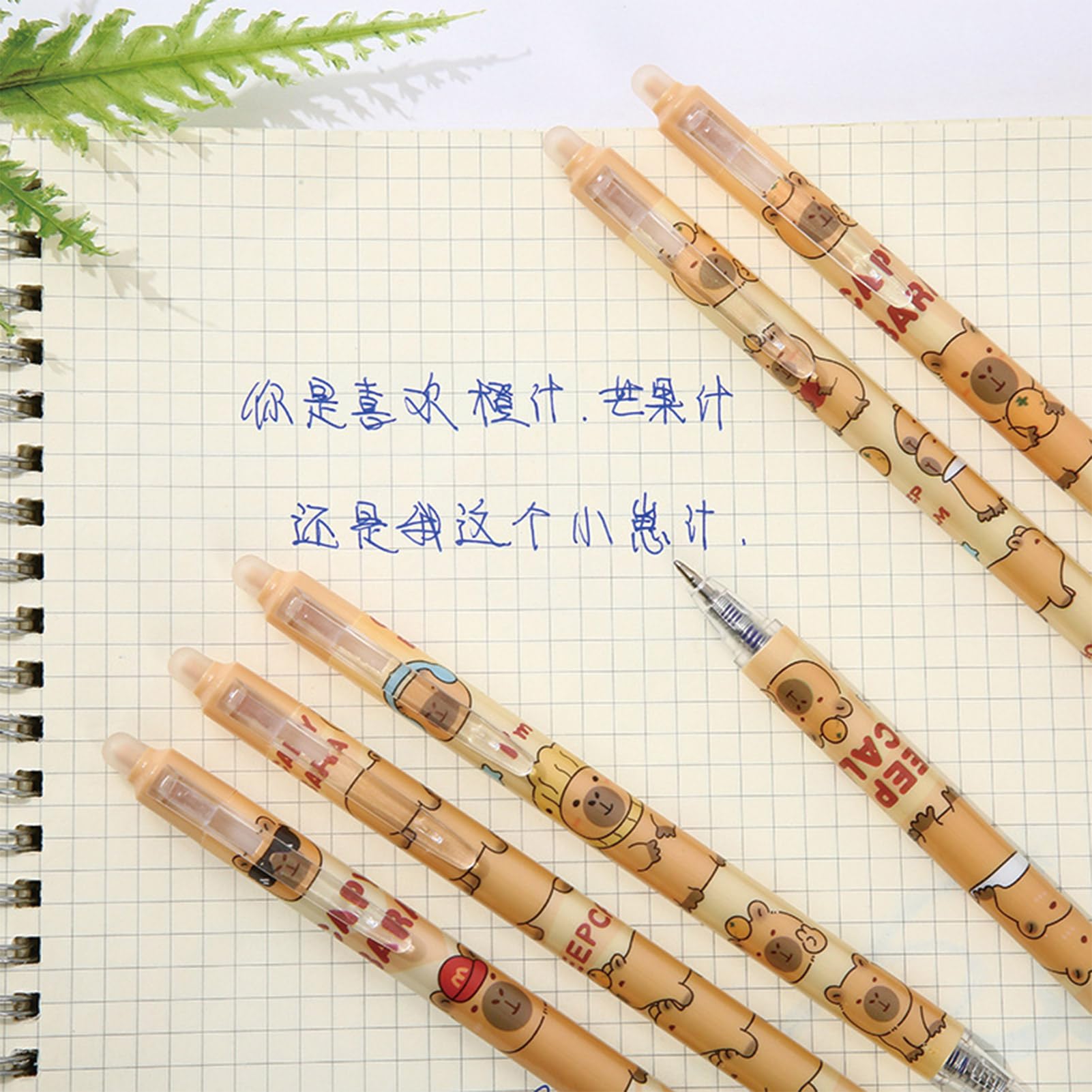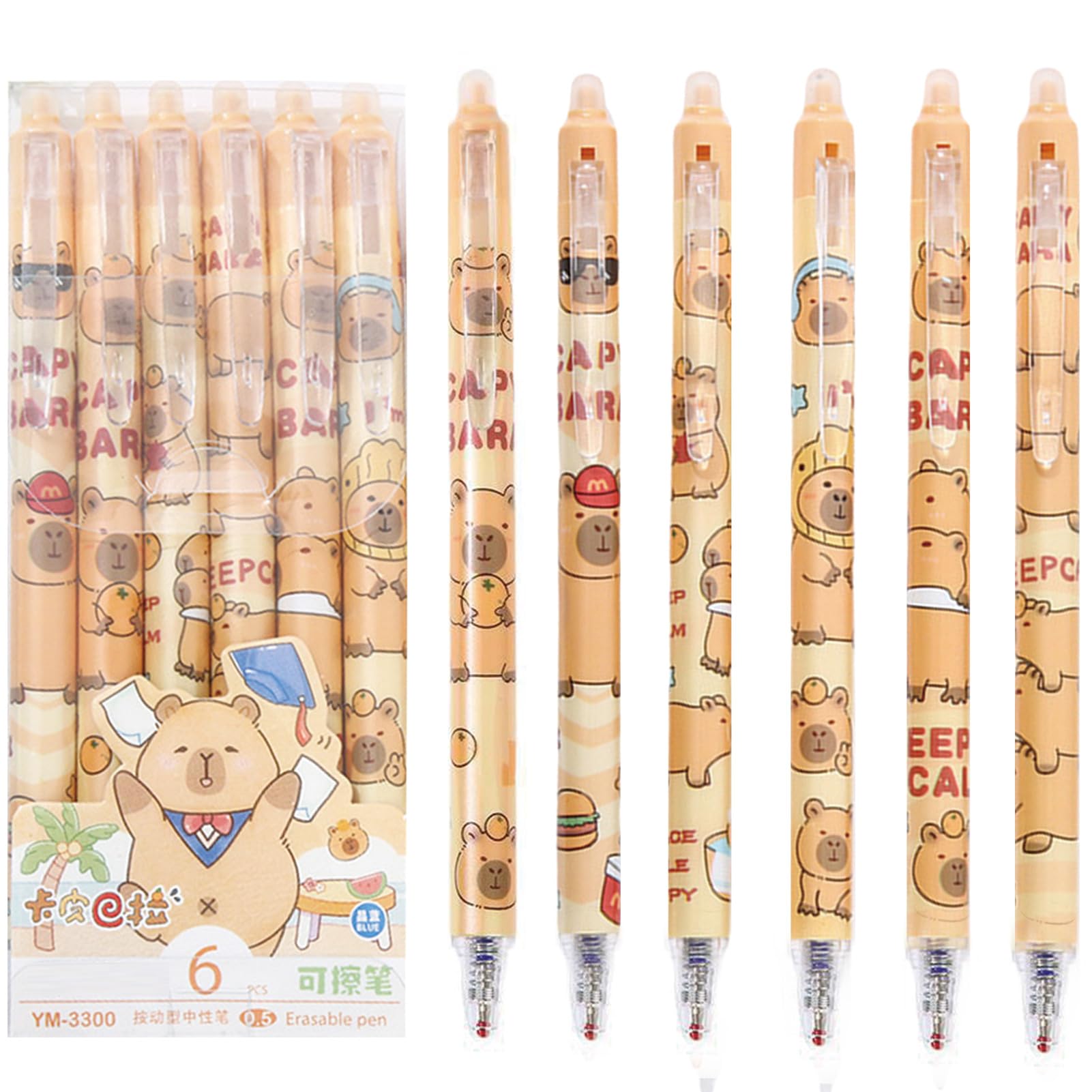 Cute Retractable Pen: The cute gel ink pens are made of plastic material, 6 pieces pens with cute cartoon capybara patterns, so cute, perfect pens for women girls boys.