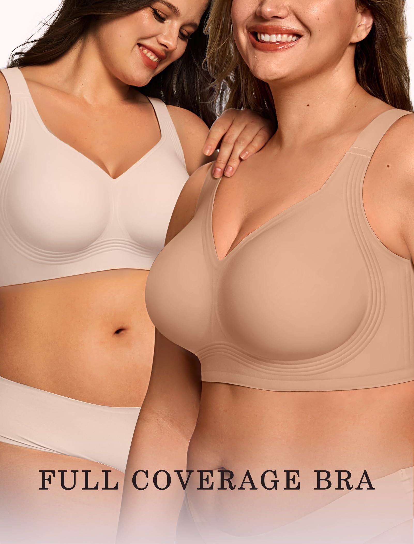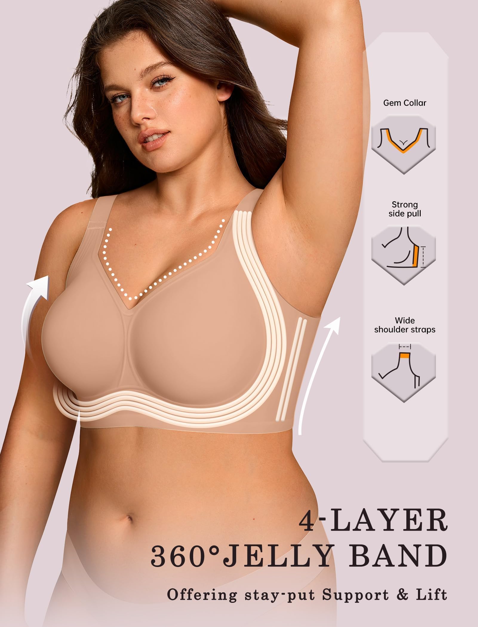 Full Coverage Bras No Underwire - The V neck Bras Designed with no wire to provide a natural relaxed fit while offering great support through 360° jelly band, ensuring all day comfort for women of all ages and all body types. Lightweight bras keep skin cool and dry. The widened elastic band stays securely in place without rolling or shifting, ensuring stability during movement. A perfect combination of freedom and support for everyday wear.