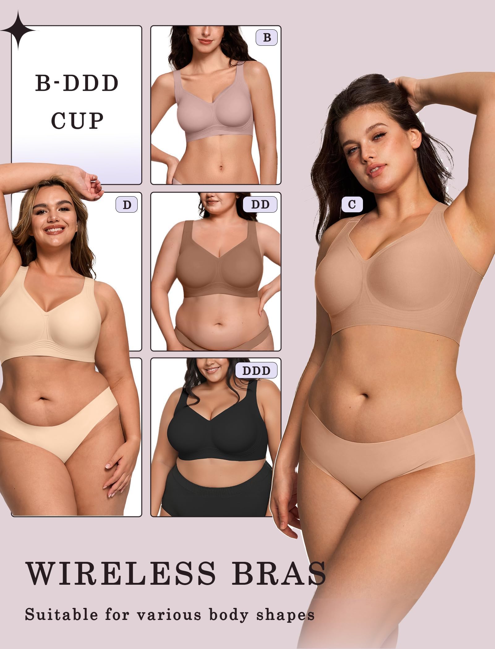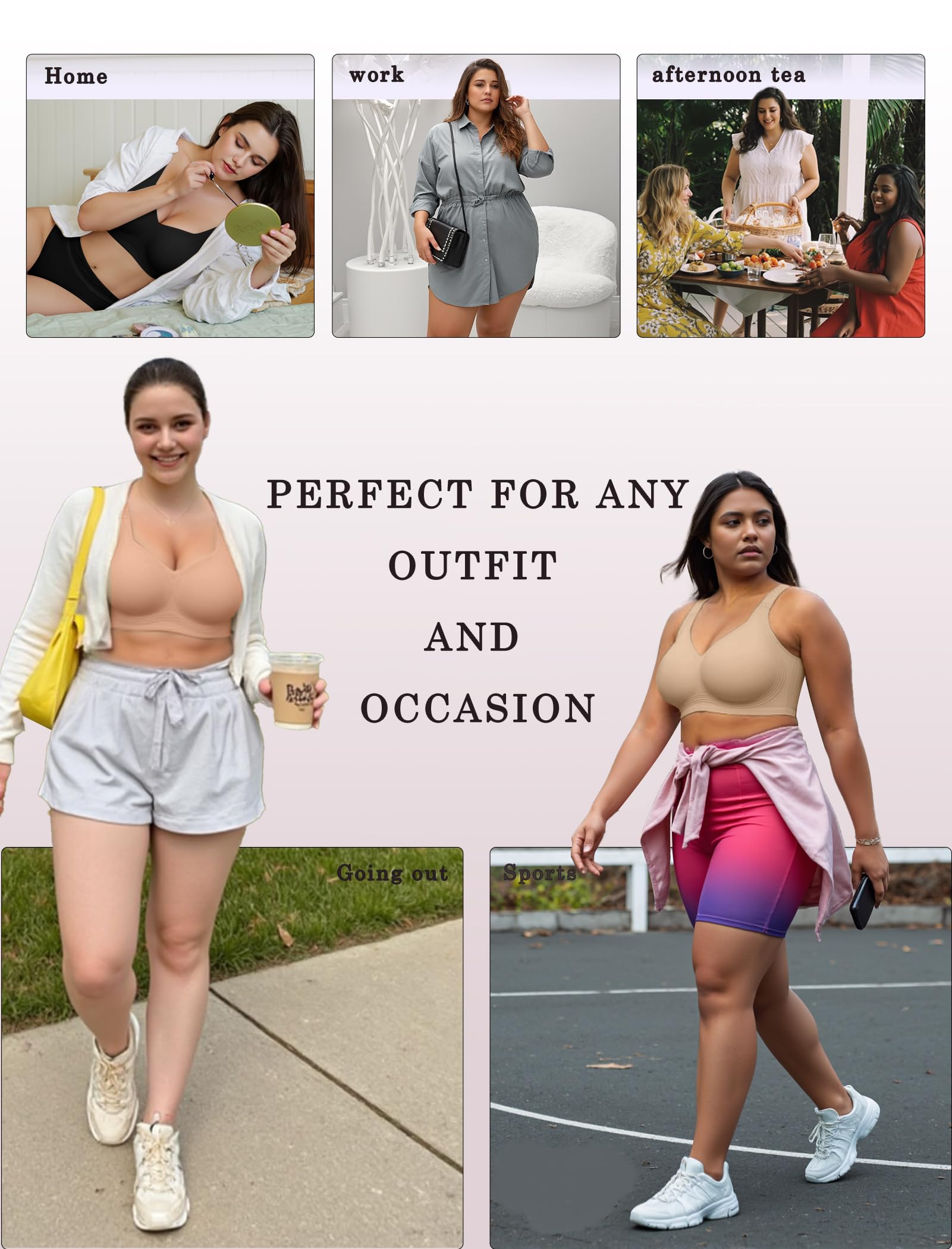 Designed Specifically for Plus-Size Women - Our plus size bra come in a wide range of sizes from S to 4XL, suitable for fuller-busted women with cup sizes B to DDD. The bra feature widened shoulder straps to relieve pressure and prevent slipping or digging, ensuring a secure fit, Providing a strong lift and support for a perfectly contoured bust. Durable straps offer all-day comfort and support. Convertible straps allow for two styles: a sexy X-back or a trendy U-back—no need for multiple bras!