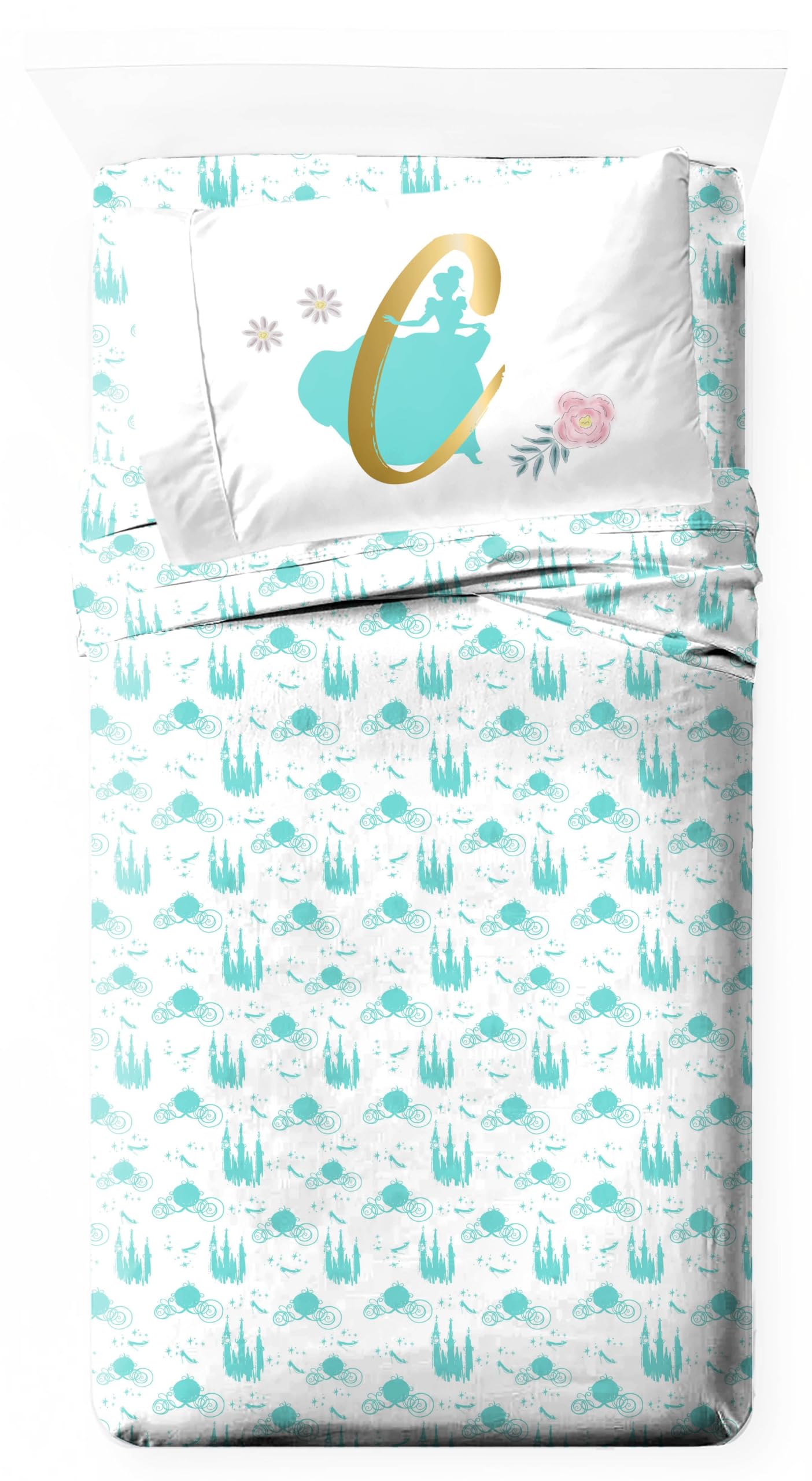 Bring magic to your child’s bedtime with the Jay Franco Disney Princess Cinderella 3-Piece Twin Sheet Set. Featuring colorful designs with a beautifully illustrated design of Cinderella surrounded by delicate florals and her golden castle, this set includes 1 twin fitted sheet (39” x 75”), 1 flat sheet (66” x 96”), and 1 standard pillowcase (20” x 30”). The deep-pocket fitted sheet fits mattresses up to 10” deep. Crafted from 100% brushed microfiber, the fabric is ultra-soft, breathable, and lightweight—perfect for year-round comfort. Parents will appreciate the machine washable, durable design that keeps colors bright and fresh wash after wash. Ideal for kids’ bedrooms, guest rooms, dorms, or sleepovers, this officially licensed bedding set makes a magical gift for birthdays, holidays, or back-to-school.