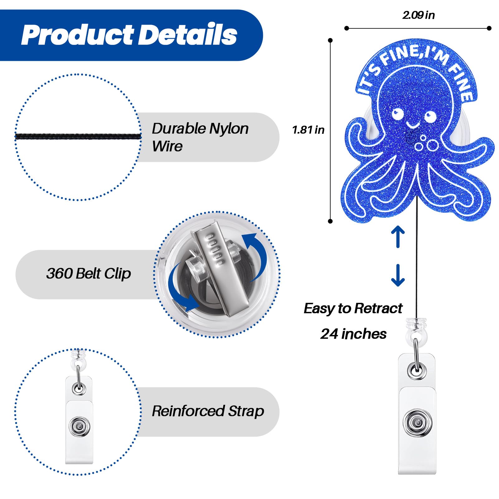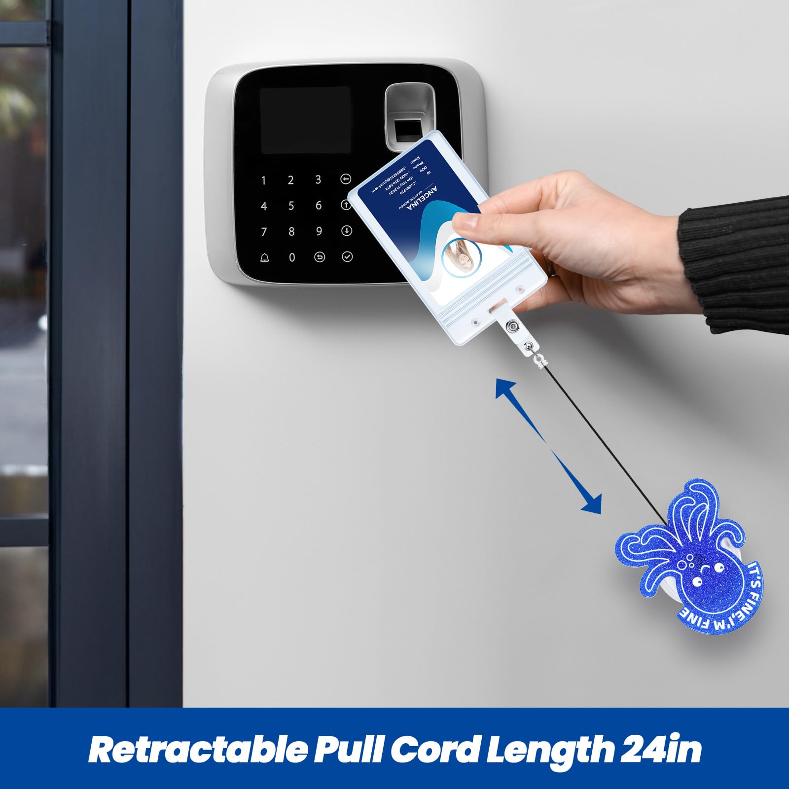 Retractable Cord: The retractable reel cord extends a maximum of 24 inches, more than enough to reach comfortably as far as your arm can reach. The flexible retractable feature enables you to effortlessly display your badge without removing it, enhancing your efficiency at work.