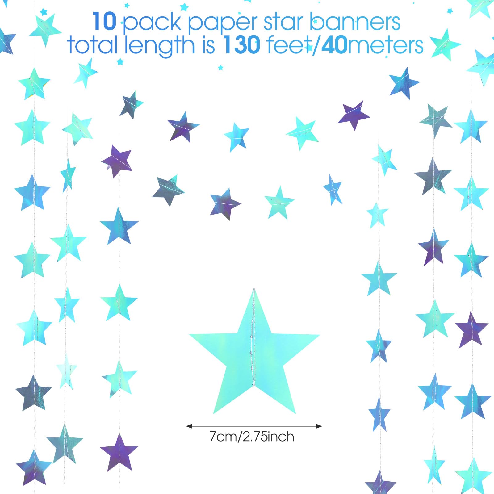 Package includes: 10 x star paper garlands, each garland is 13 feet/ 4 meters long, total length is 130 feet/ 40 meters; Enough quantity can reach your party decoration needs