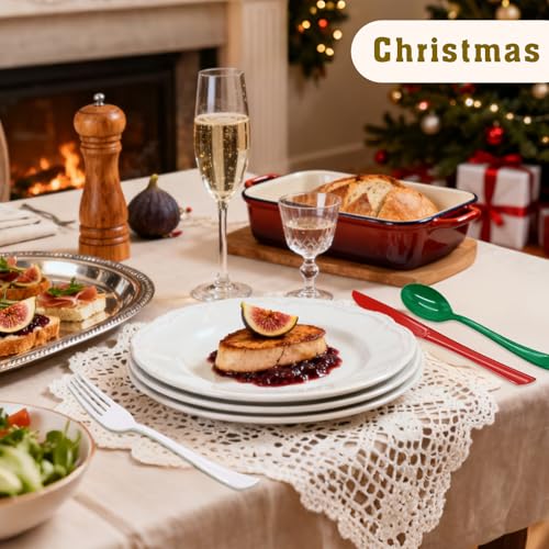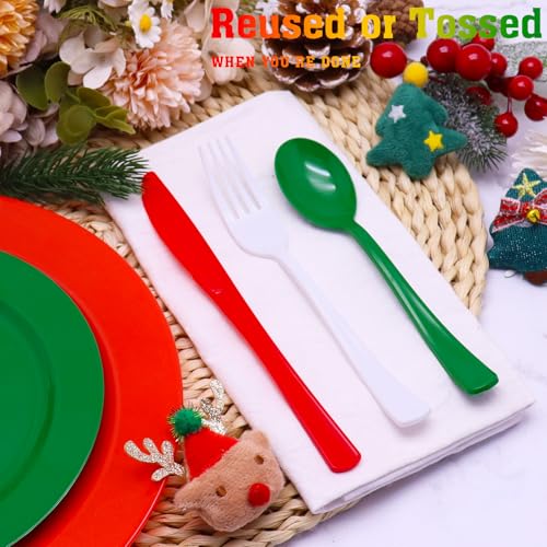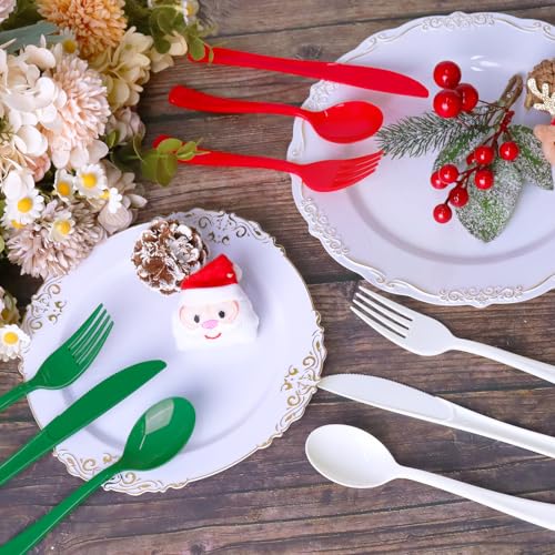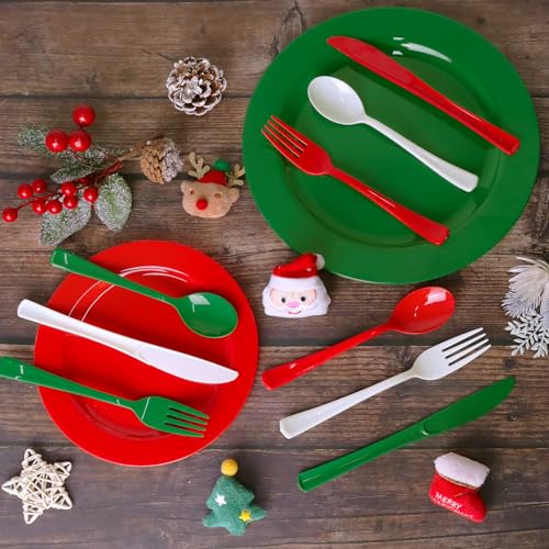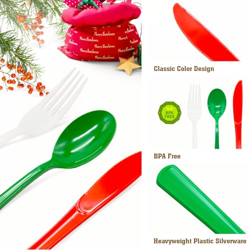 【Classic Color Combination】: Christmas plastic silverware set adopts three classic Christmas colors of red, green and white, which perfectly fits the festive atmosphere. Not only practical but also decorative, add beauty to your table and create a festive feeling for Christmas party.