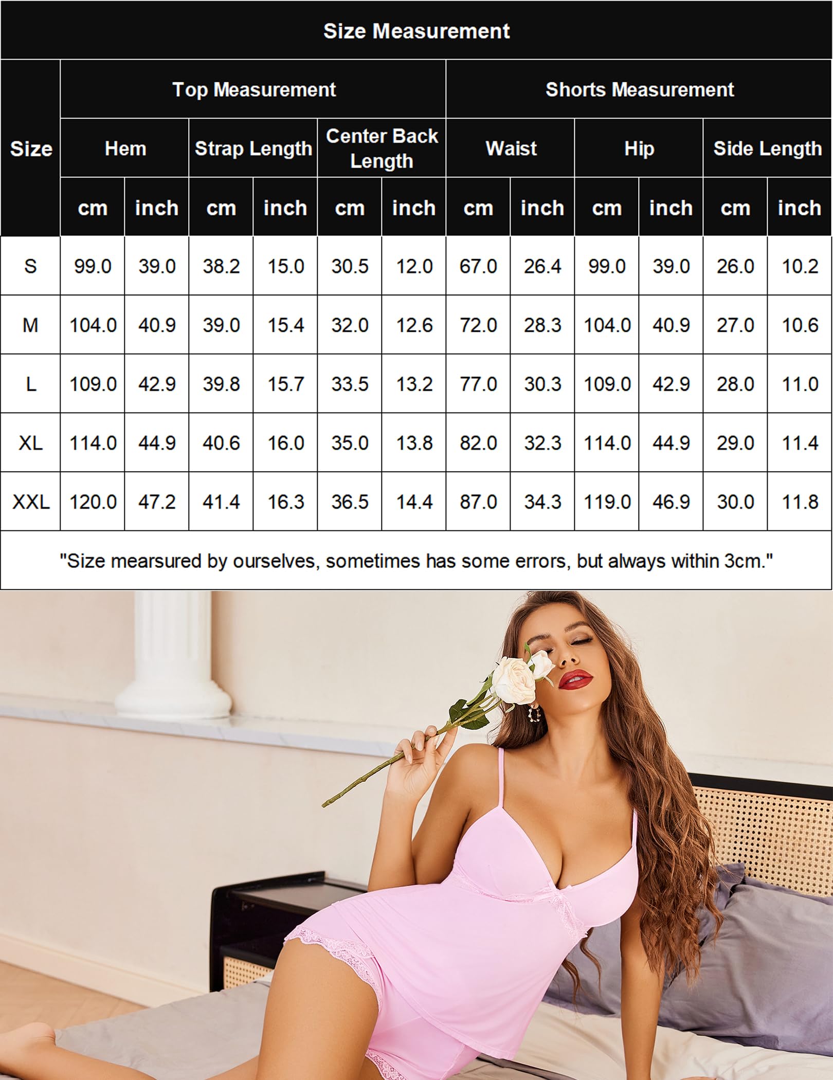 【Package Content】: 1 x Cami Pajama Top 1 x Lace Trim Pajama Shorts