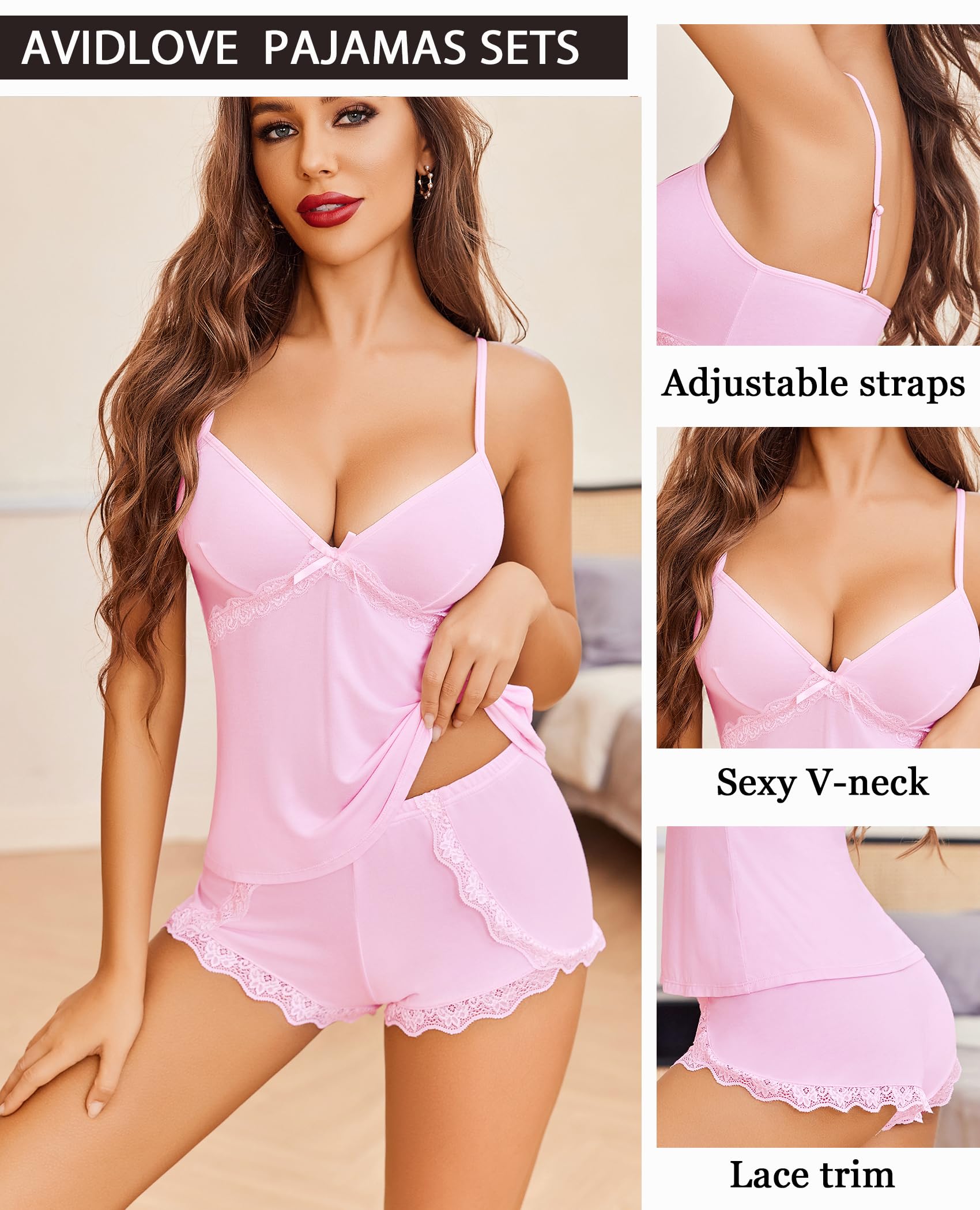 【Cami Pajamas Set】: Sexy pajamas for women with shorts is designed with v neck and with bow decoration ,adjustable spaghetti strap for easy wearing and adjustment to the comfort position you want, make you comfort, sexy in the night.