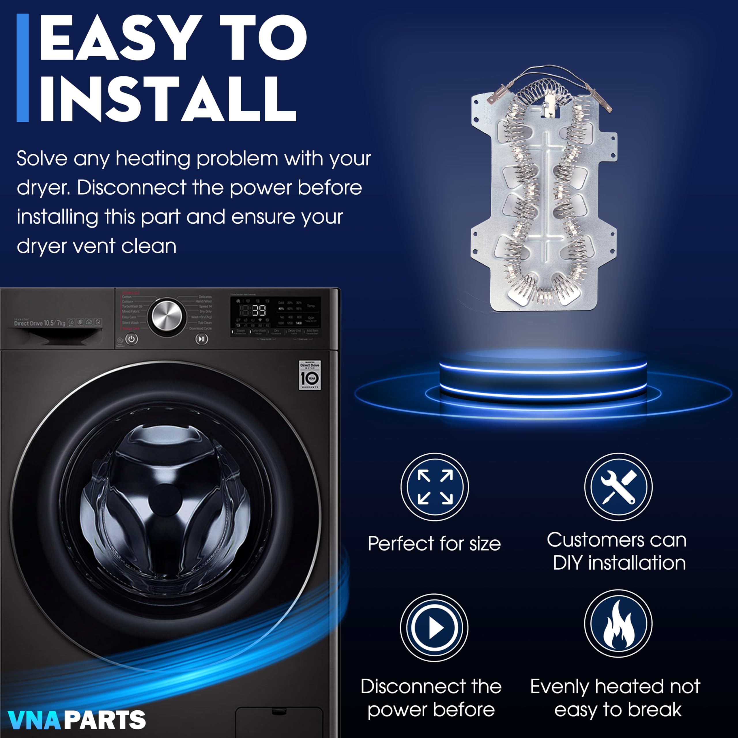 ✔️Efficient and Durable Heating Element for Samsung Dryer: Specifically designed for samsung steam dryer heating element replacements, this part ensures faster, more efficient drying with consistent heat output. Ideal for resolving issues like clothes not drying properly or dryers shutting off mid-cycle. Easy Installation with OEM Quality Assurance: This heating element for Samsung electric dryers is built to meet OEM specifications for a perfect fit and long-lasting durability. Ideal for replacement for Samsung heating element for dryer models, this part ensures seamless installation and reliable performance.