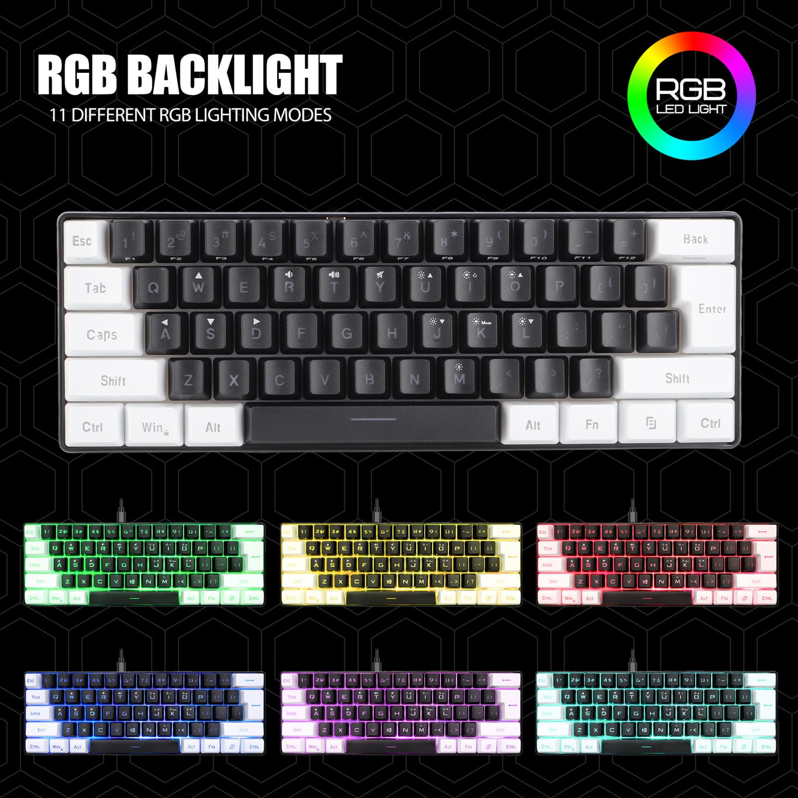MULTIPLE RGB MODES: The Mini RGB keyboard offers multiple RGB modes and LED backlighting, you can customize the brightness and respiration rate according to your preference, and the backlighting makes typing at night more enjoyable.