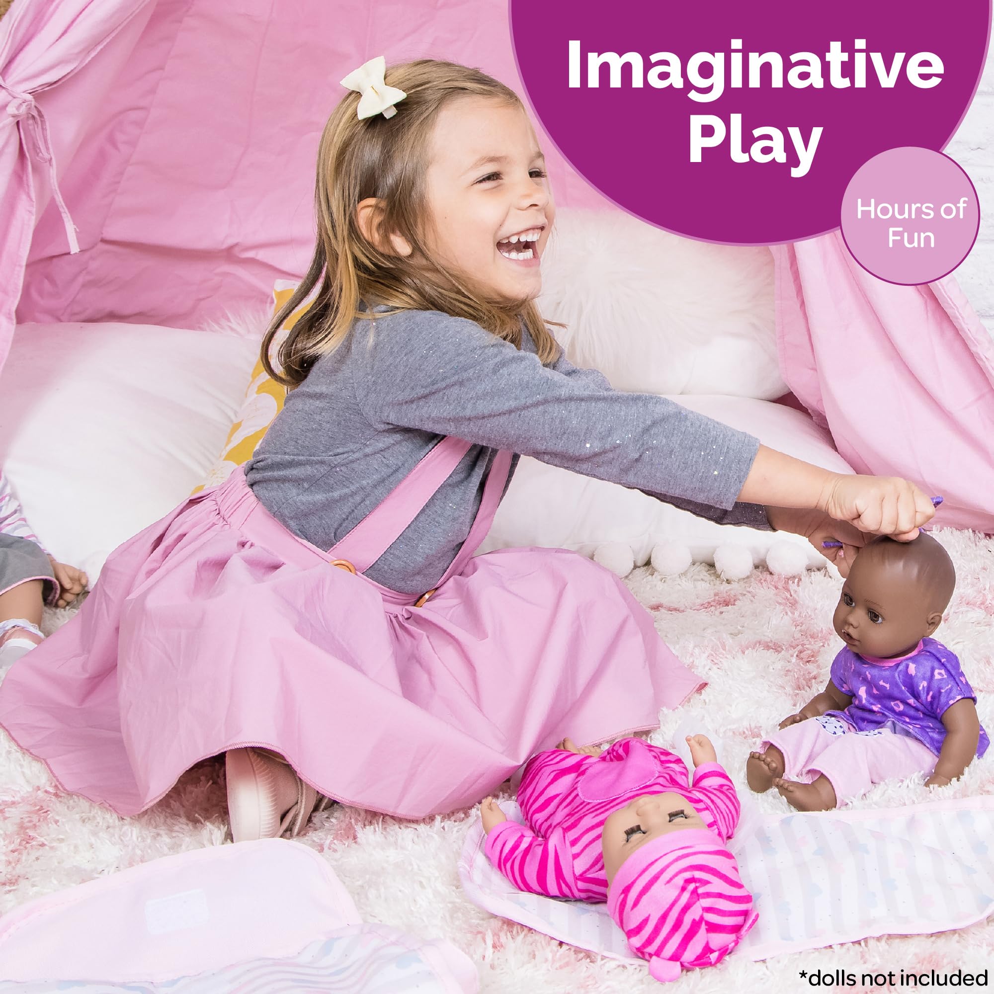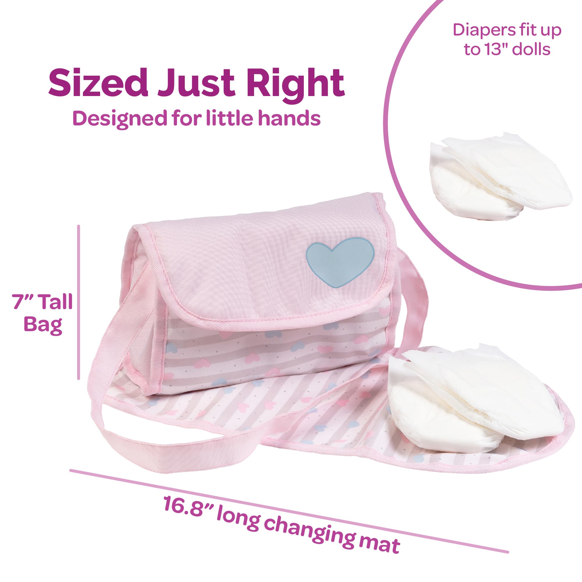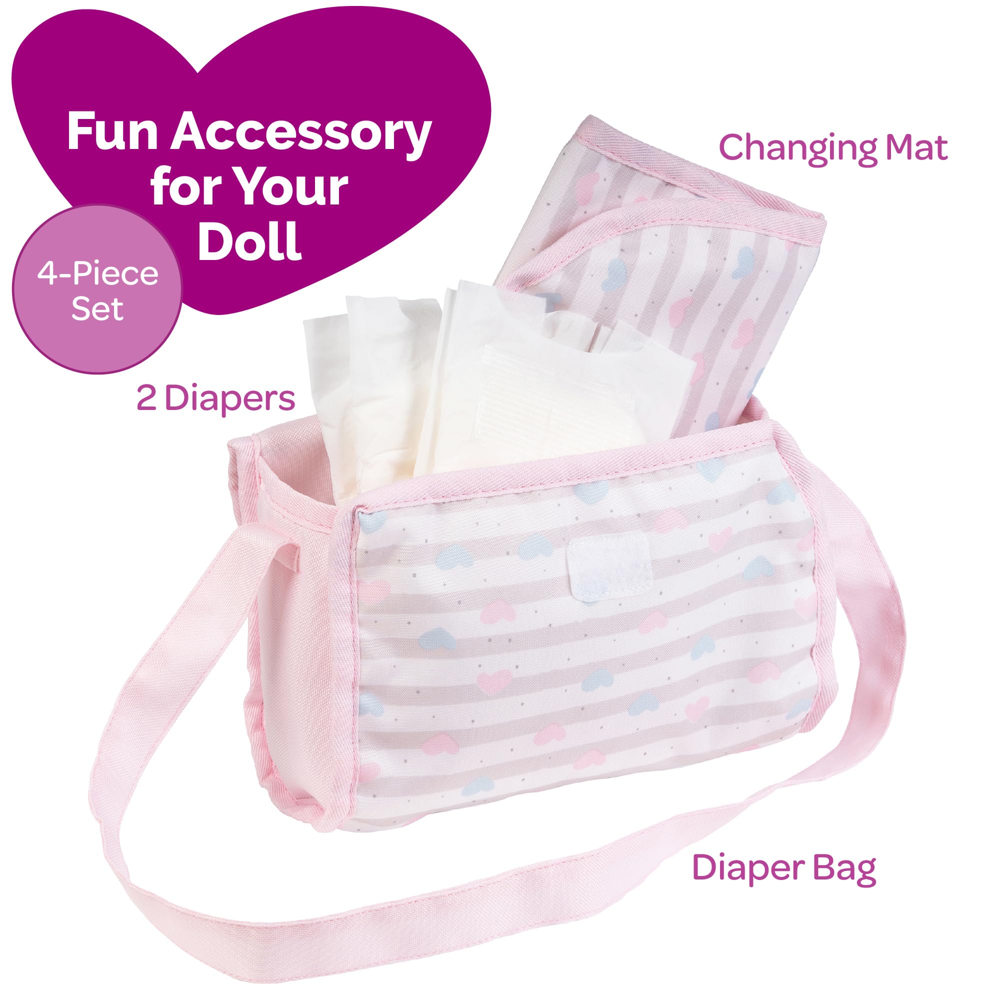 4-PIECE SET - This Adora doll accessory set comes with a spacious diaper bag, a changing mat, and 2 traditional diapers.