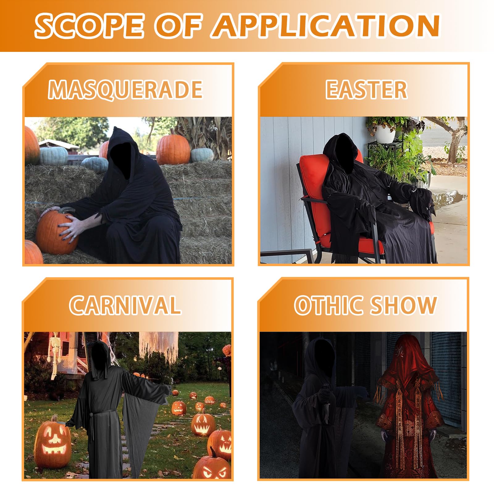 【Includes】: This scary costume includes a Hooded Robe, Black Gloves, Belt and Handheld Props set.