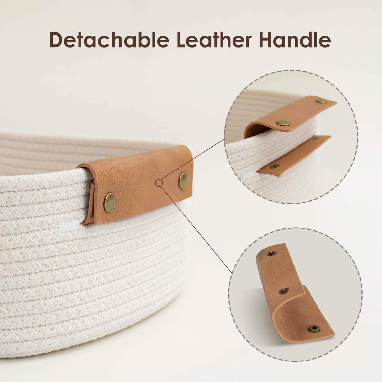 Stylish Design: The rectangle basket is designed with warm beige. The handles on both sides are wrapped in brown leather. It is easy to carry and adds a stylish touch to your living space