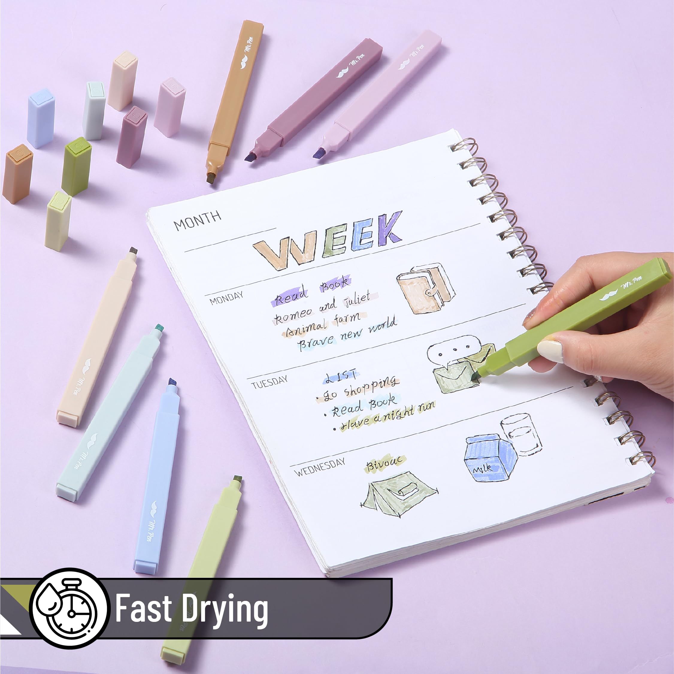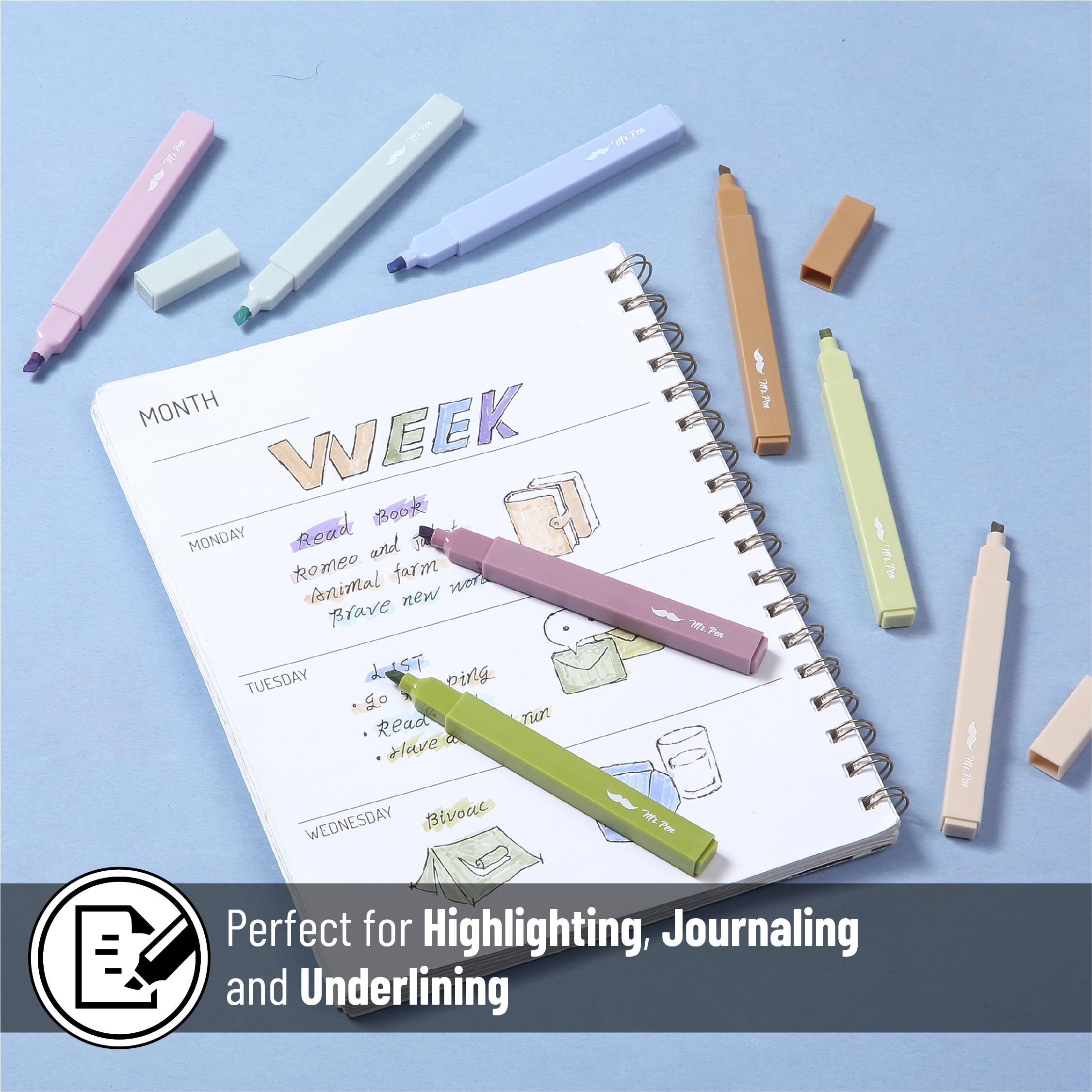 Mr. Pen aesthetic highlighters come in a set of 8 serene, earth-inspired colors that bring natural elegance to your notes and projects.
