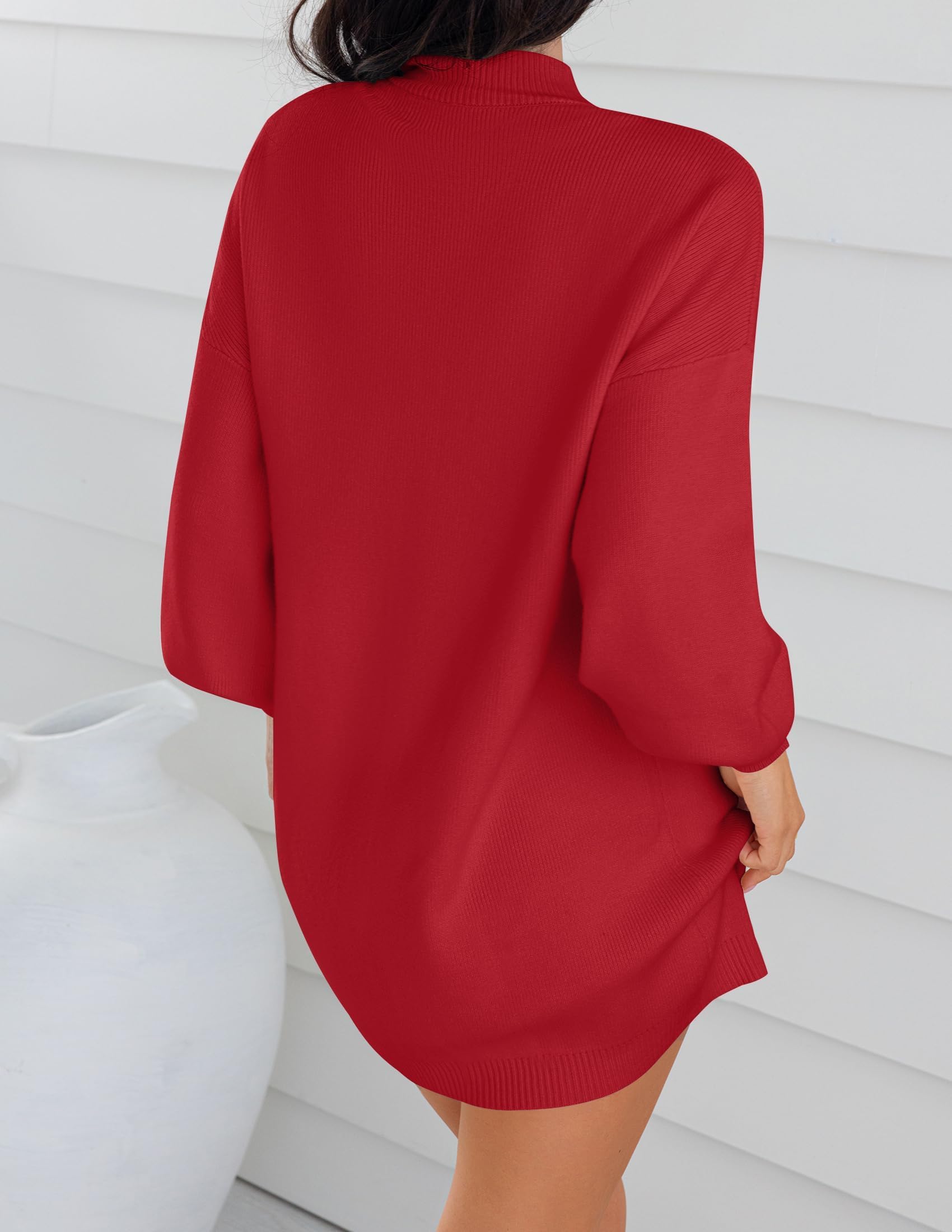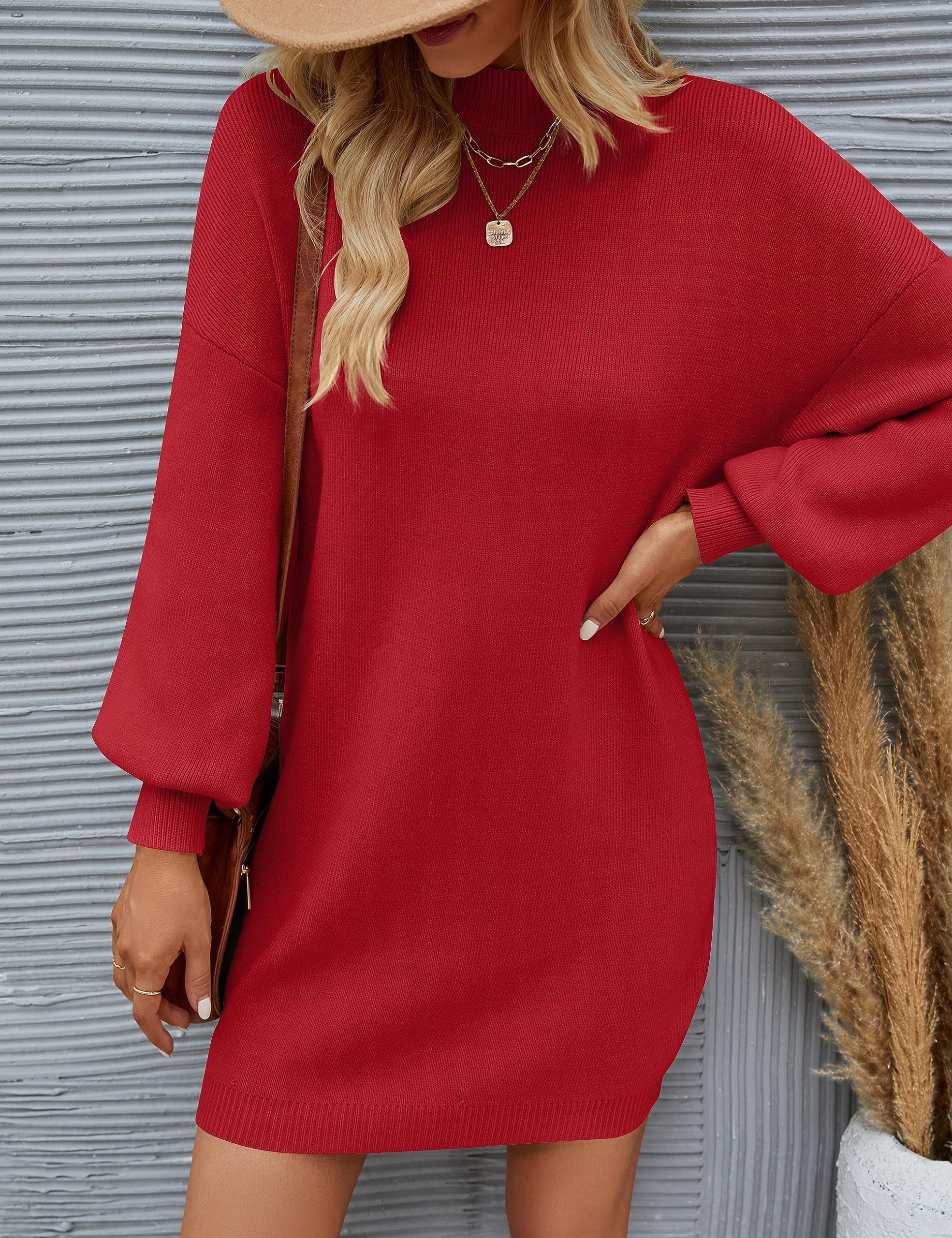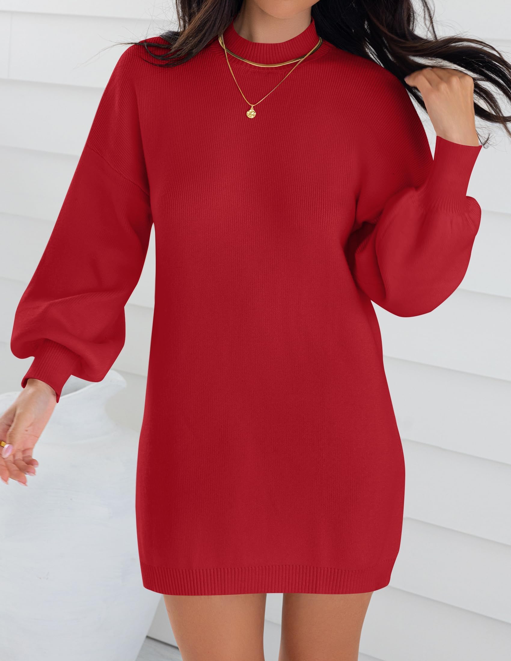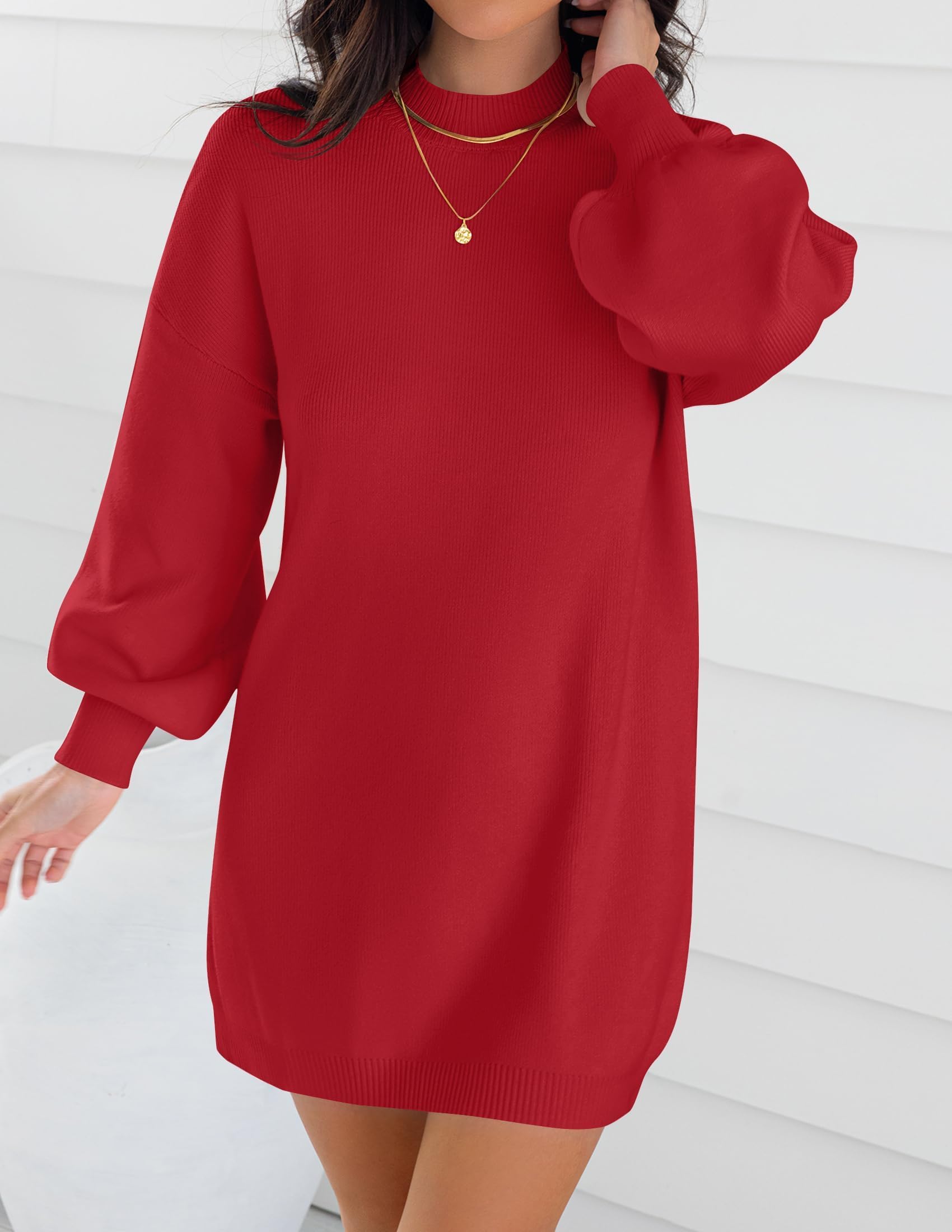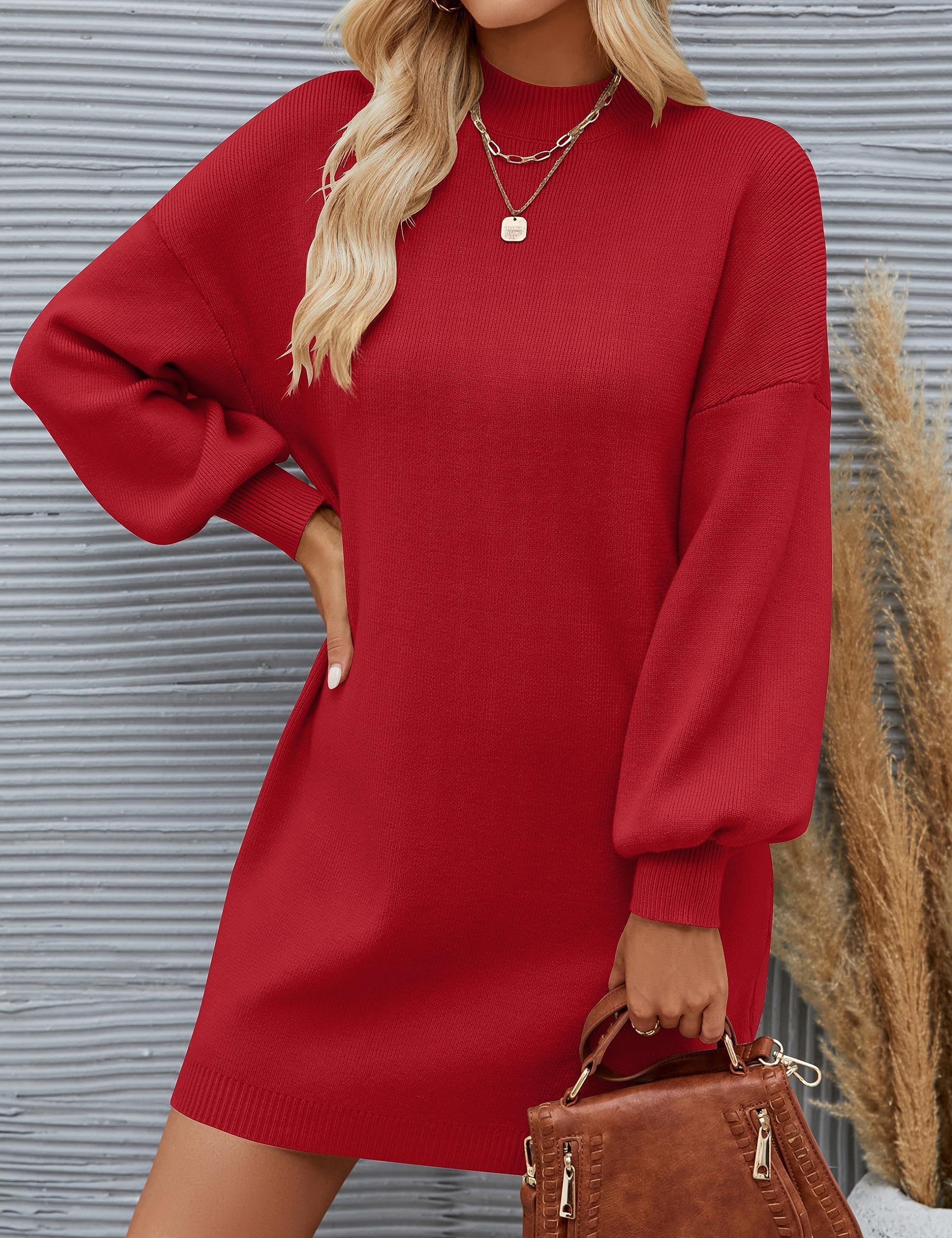 Sweater dresses for women 2025, mini dresses for women, fall sweater dress, lantern long sleeve dress, ribbed knit dress, mock neck, loose fit, classic solid color, above knee length, slouchy and baggy style, maternity dress, winter dress, cocktail party dress