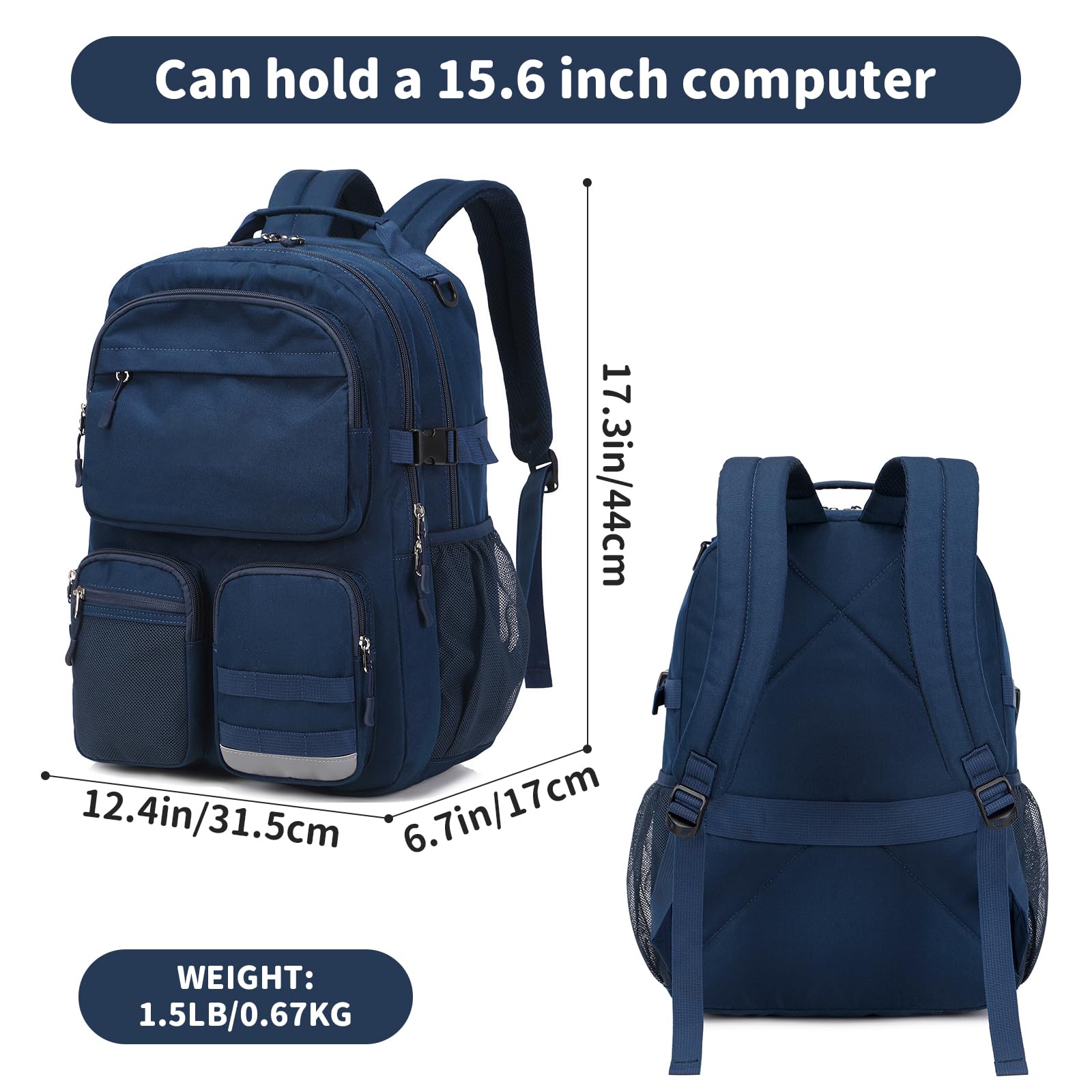 [Large Capacity] - Size: 12.4×6.7×17.3 inches, it is large enough to carry everything you need. The main room contain 15.6 inch laptop compartment can hold textbook, tablet, chargers, power bank and clothes.