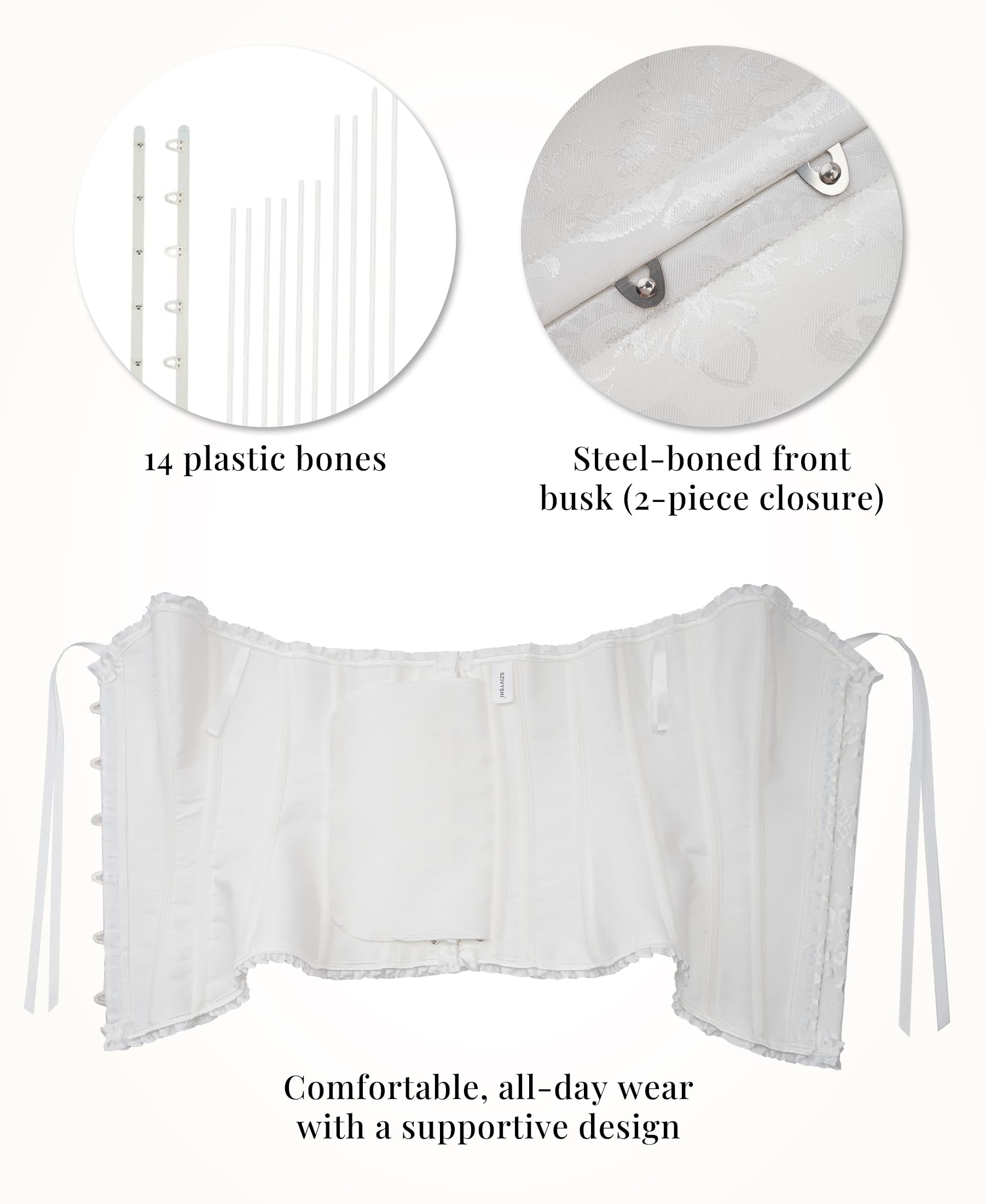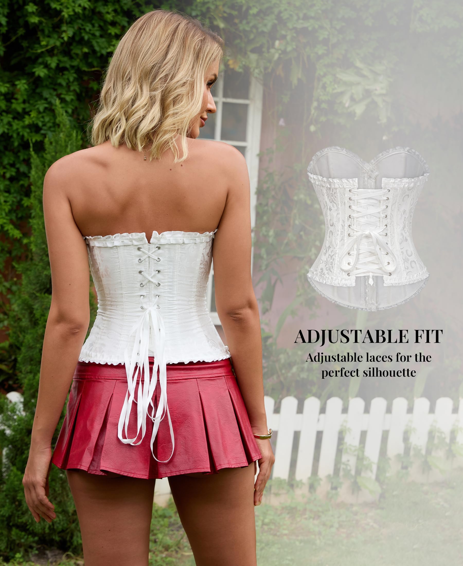 Description Product's Styling Features: 1. Material:90% Polyester 5% Cotton 5% Spandex;Overbust fashion corset;Plastic Boned. 2.Front design:Buckle up;Back design:Lace up with ajustable string. 3. Package:1 corset top. Function: 1.Fashion To slim the body and make it conform to a fashionable silhouette. Corsets are also used in a variety of activities and festivals. Warm Tip: Softly hand wash