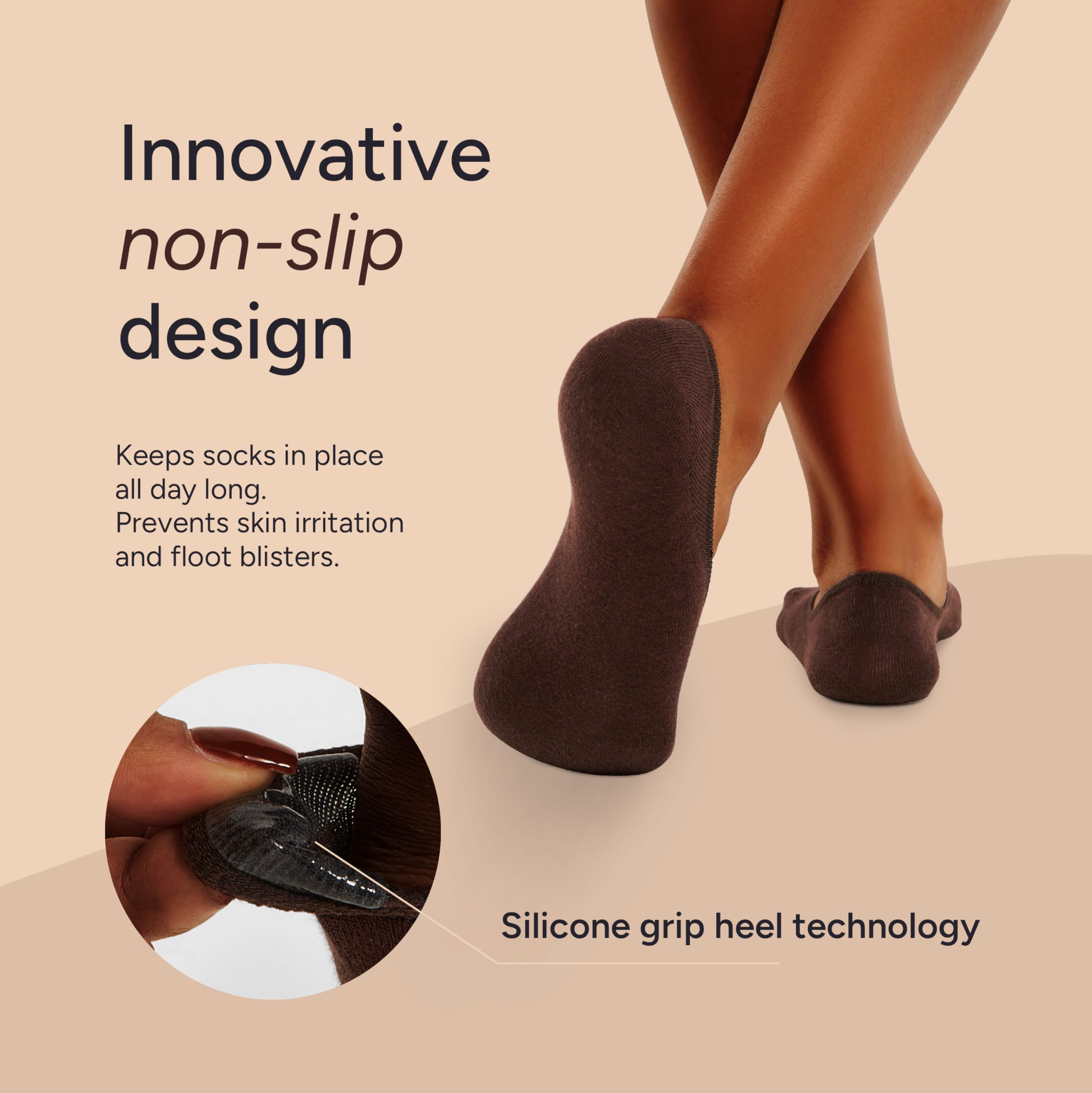 Truly No Show. The Eedor skin-toned no show socks for women stay hidden inside your shoes for a sleek, comfortable look that won’t slip. Perfect for casual, formal, or sporty styles, these womens no show socks provide a secure fit all day.