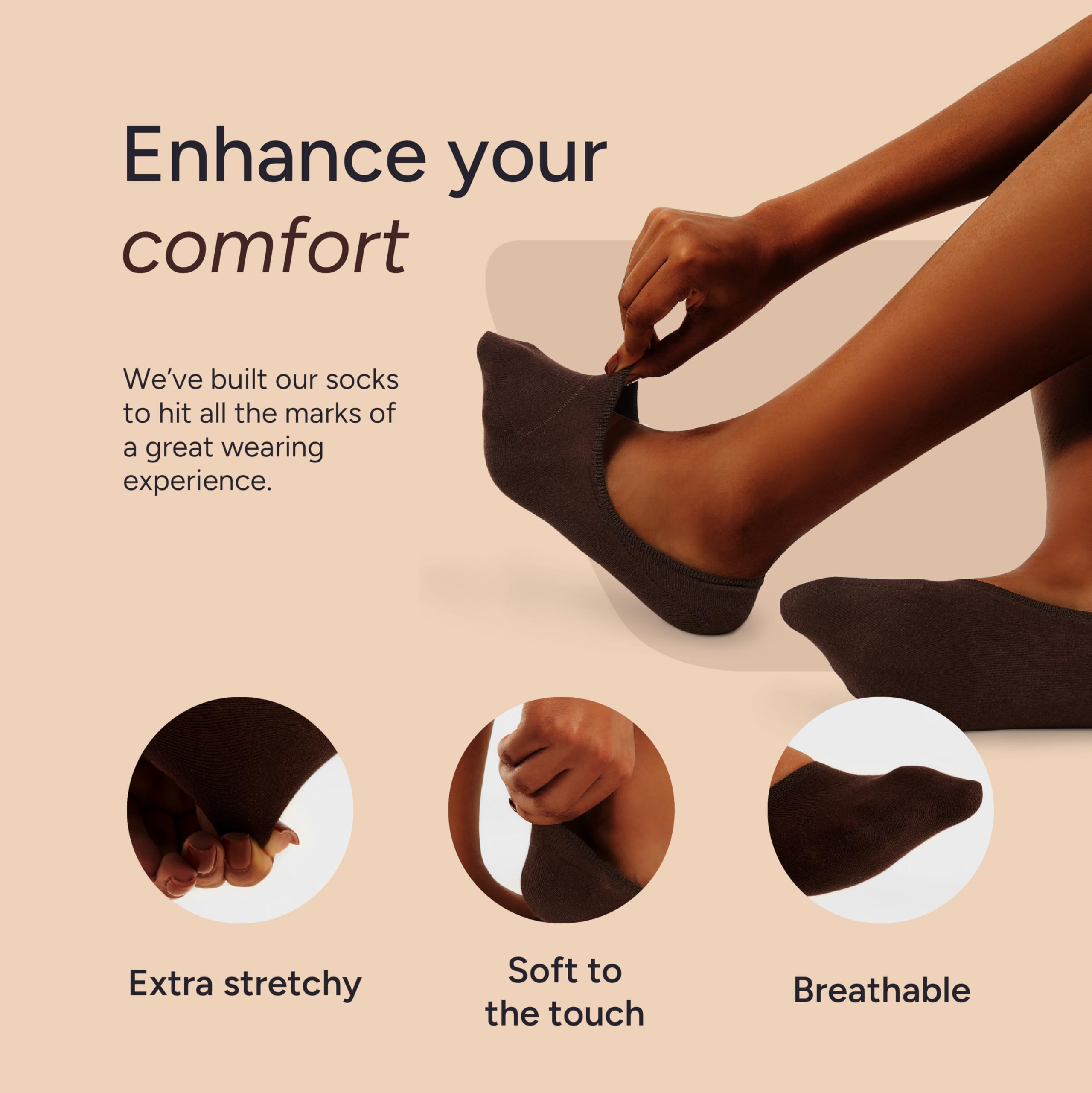 Blends with Your Skin Tone. Our ankle socks for women come in five shades to match different skin tones, giving a discreet, barely-there look. Ideal for those seeking truly invisible socks for women that pair seamlessly with any outfit.