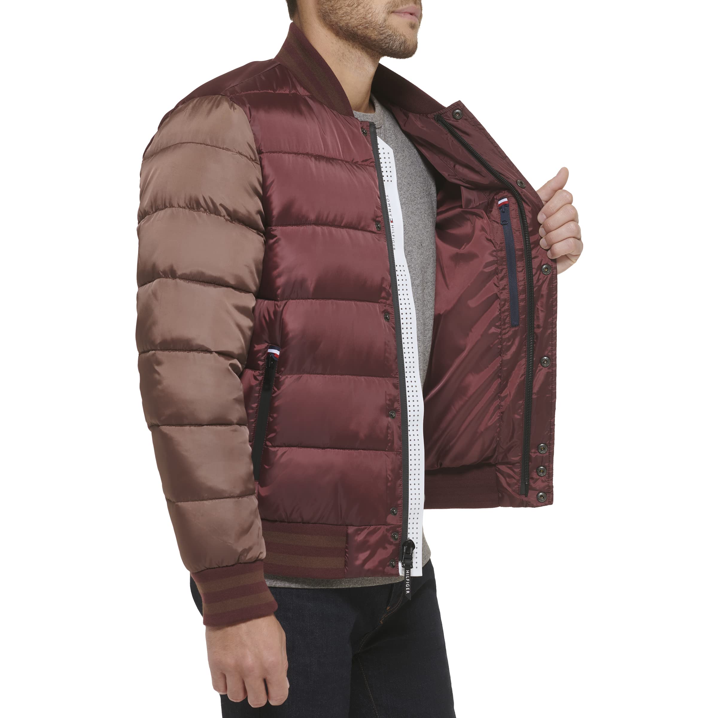 Description Go old-school with this retro-inspired nylon quilted bomber from Tommy Hilfiger. Featuring a plush all-over quilted design and soft rib knit cuffs, collar and hem, this jacket will feel comfortable all day long. Complete with two lower pockets with zippers for storage.