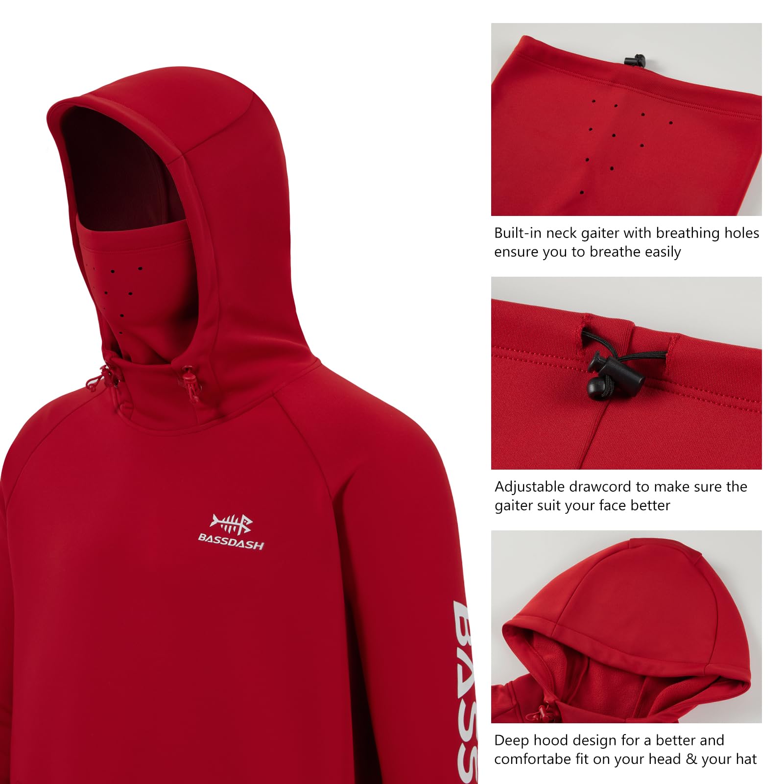 Built-in neck gaiter with laminated laser cut breathing holes ensure that you breath freely; Featured with an adjustable draw cord to make sure the mask won't slip from your face