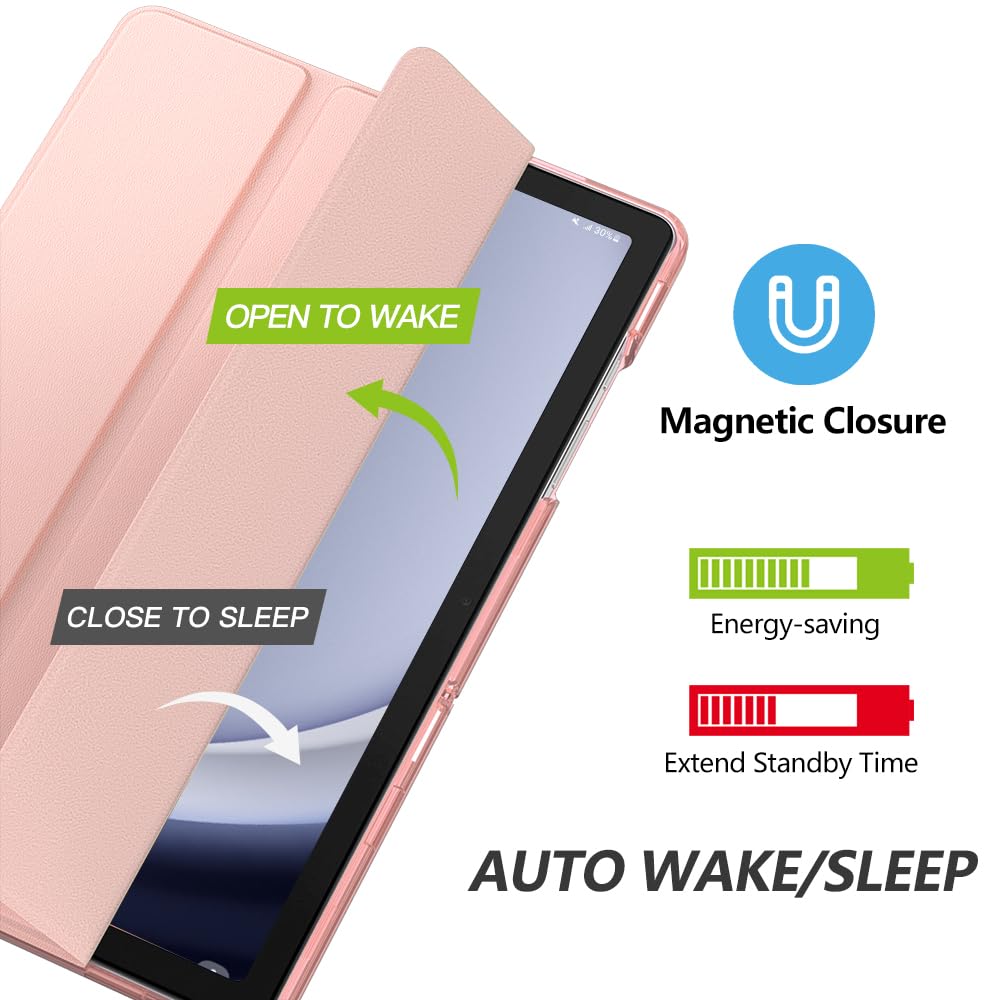 Auto Wake/Sleep: Built-in magnetic strip, automatically wakes or puts your tablet to sleep when the lid is opened and closed. this Tab A9 Plus Case Protects and extends battery life