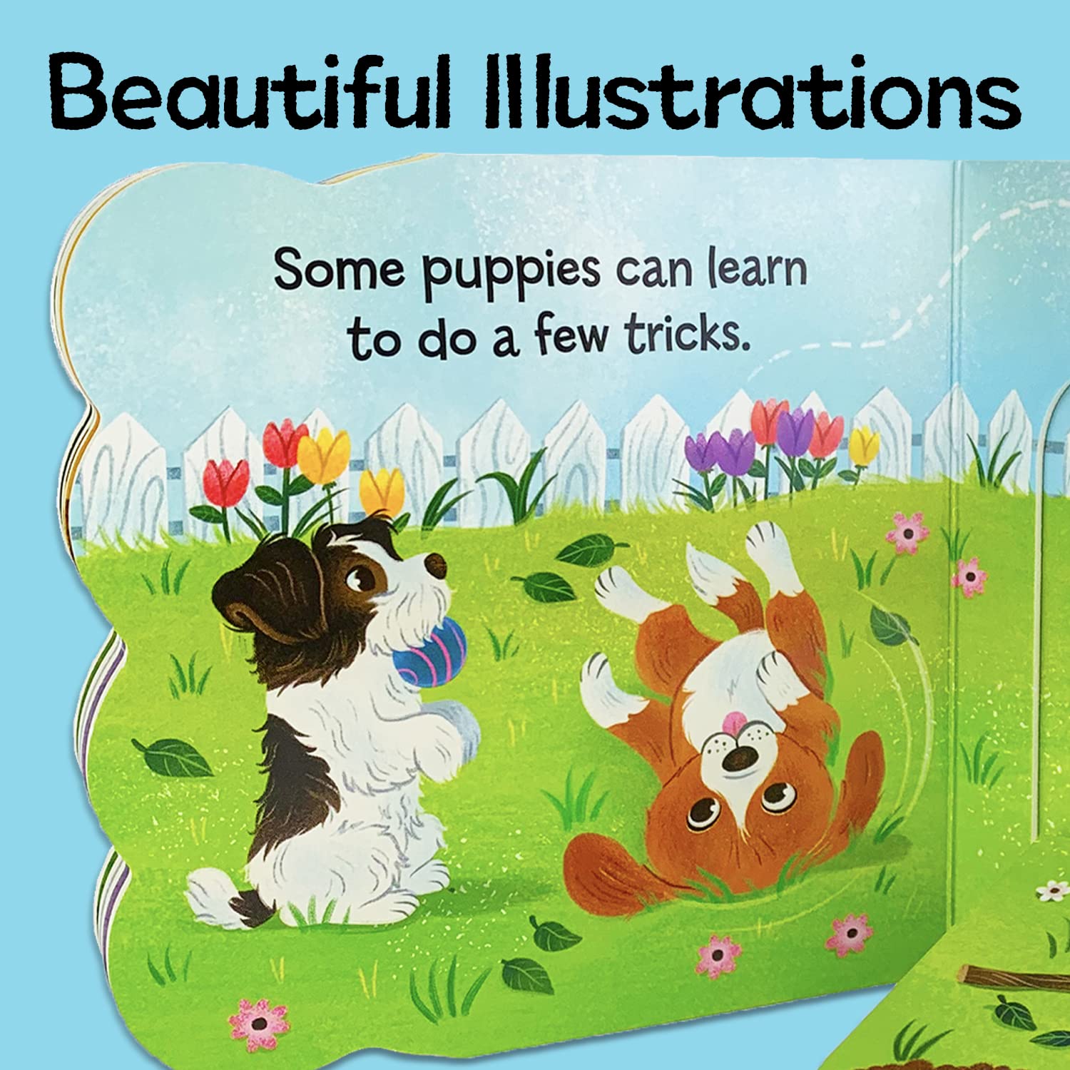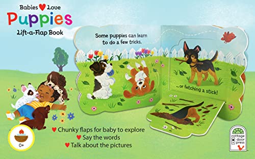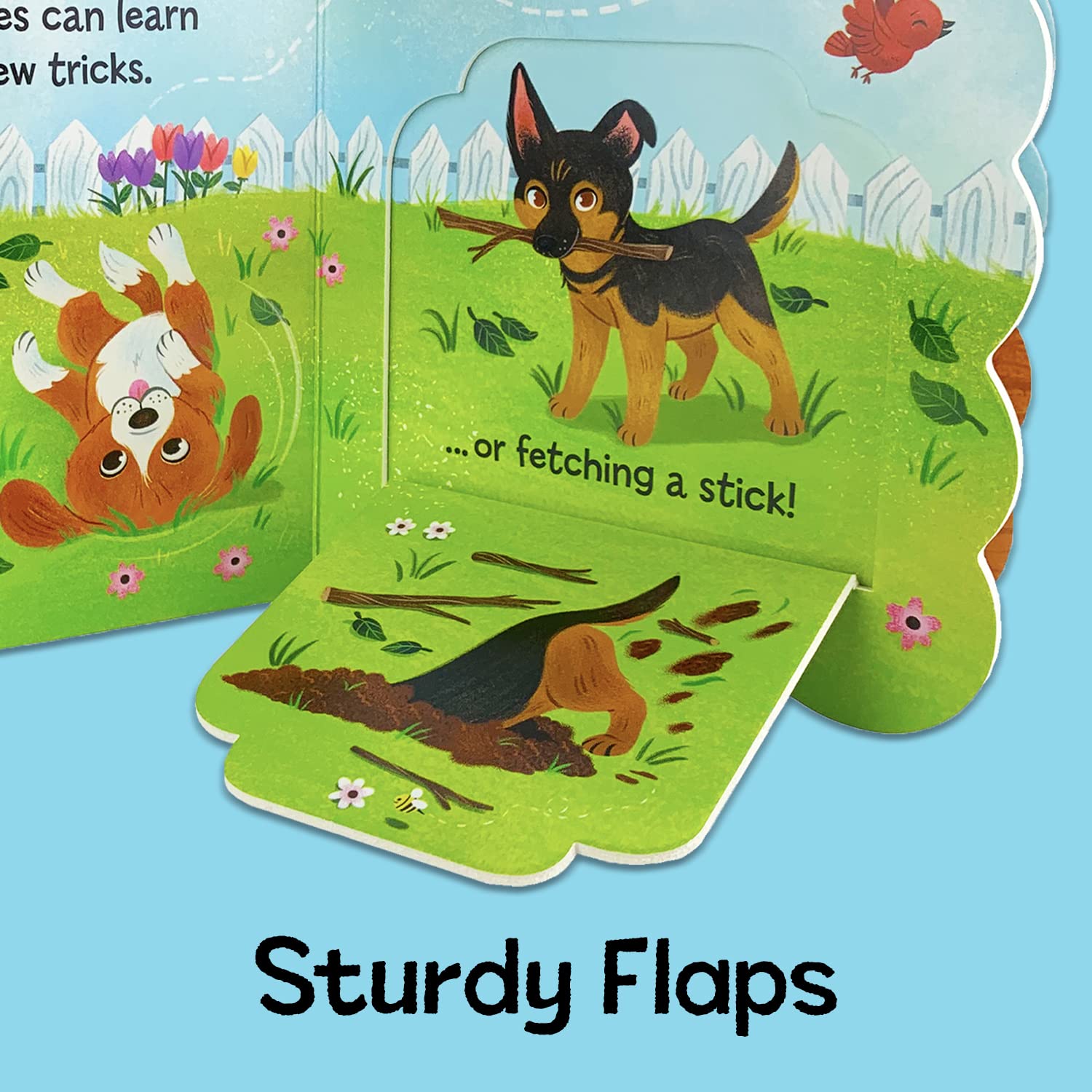 Bright bold artwork and tons of puppy surprises to engage and entertain your baby. Dog breeds featured: labrador retriever Boston terrier beagle poodle bulldog dachshund dalmation Siberian husky Welsh corgi terrier German shepherd pug cocker spaniel and lovable mutts.| Sturdy thick board pages and durable flaps are designed to withstand traditional wear and tear for curious little infants and toddlers| Rhyming story teaches language patterns to babies and toddlers and supports language readiness |Interactive elements such as lift-a-flaps encourage sensory exploration and help support the development of fine motor skills and hand-eye coordination in developing children | Perfect gift for little animal lovers! A must for dog fans.