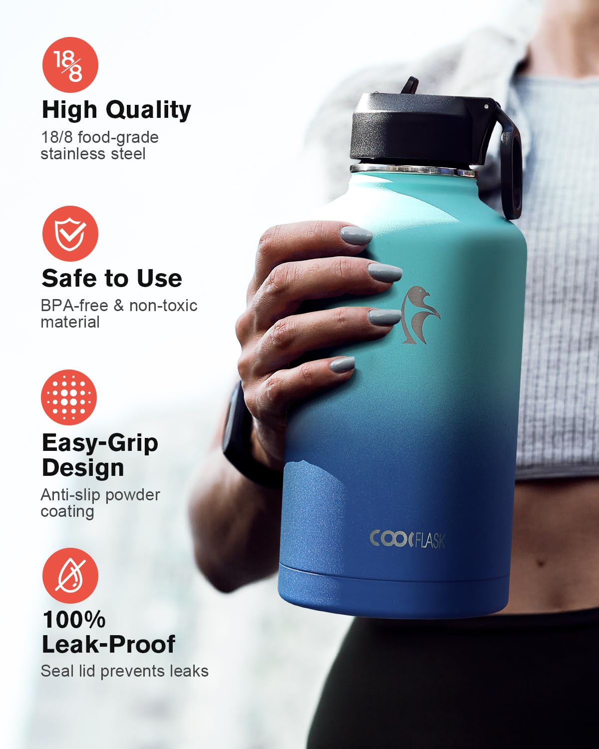 Travel Longer: With 64 oz large capacity, the large water bottle allows you to enjoy your trip easier with fewer refills, perfect for hiking, camping and sport events. It's easy to stay hydrated and refreshed on exciting adventures with such a versatile bottle.