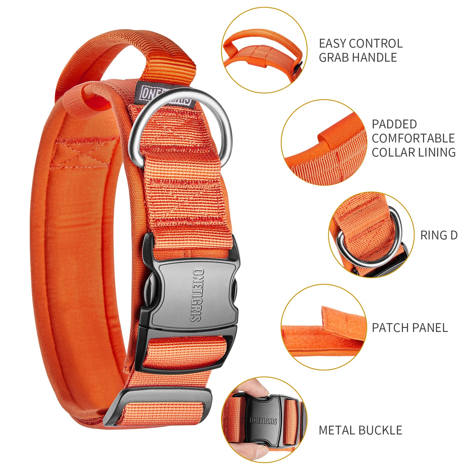 【Practical Design】Military Training Nylon Dog Collar has special control handle,can efficiently control your dog when training, patrol,hiking, jogging, hunting, camping, working, running, jumping, traveling, camping.fits lots of medium and large dogs