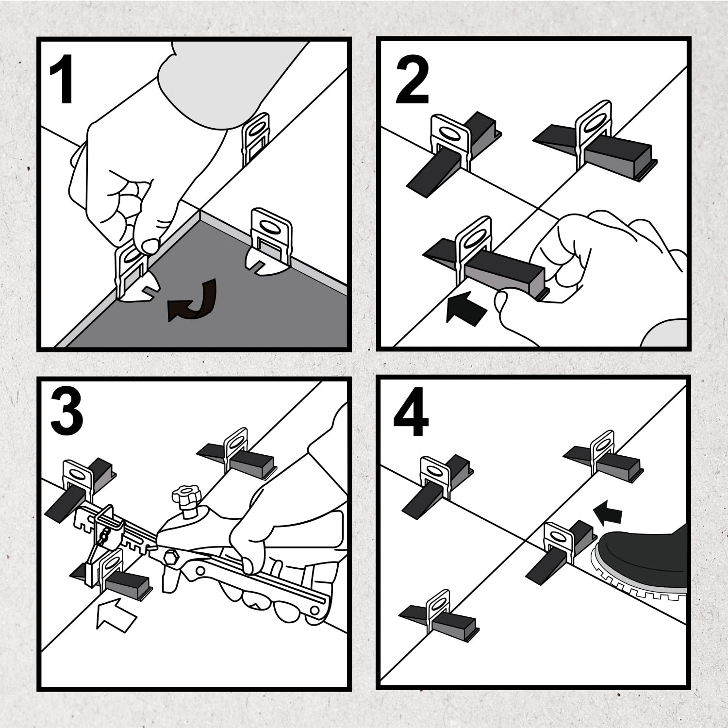 FUNCTION: Achieve perfectly level tile installations with these reusable tile leveling wedges. Essential for professional-looking floors and walls, they ensure a seamless, flat surface that adds value and beauty to tile installation. Whether you're working with trending large format tile, classic ceramic, porcelain, or natural stone like marble, these wedges keep your tile level not only during installation, but also throughout the thinset curing time for a consistent finish