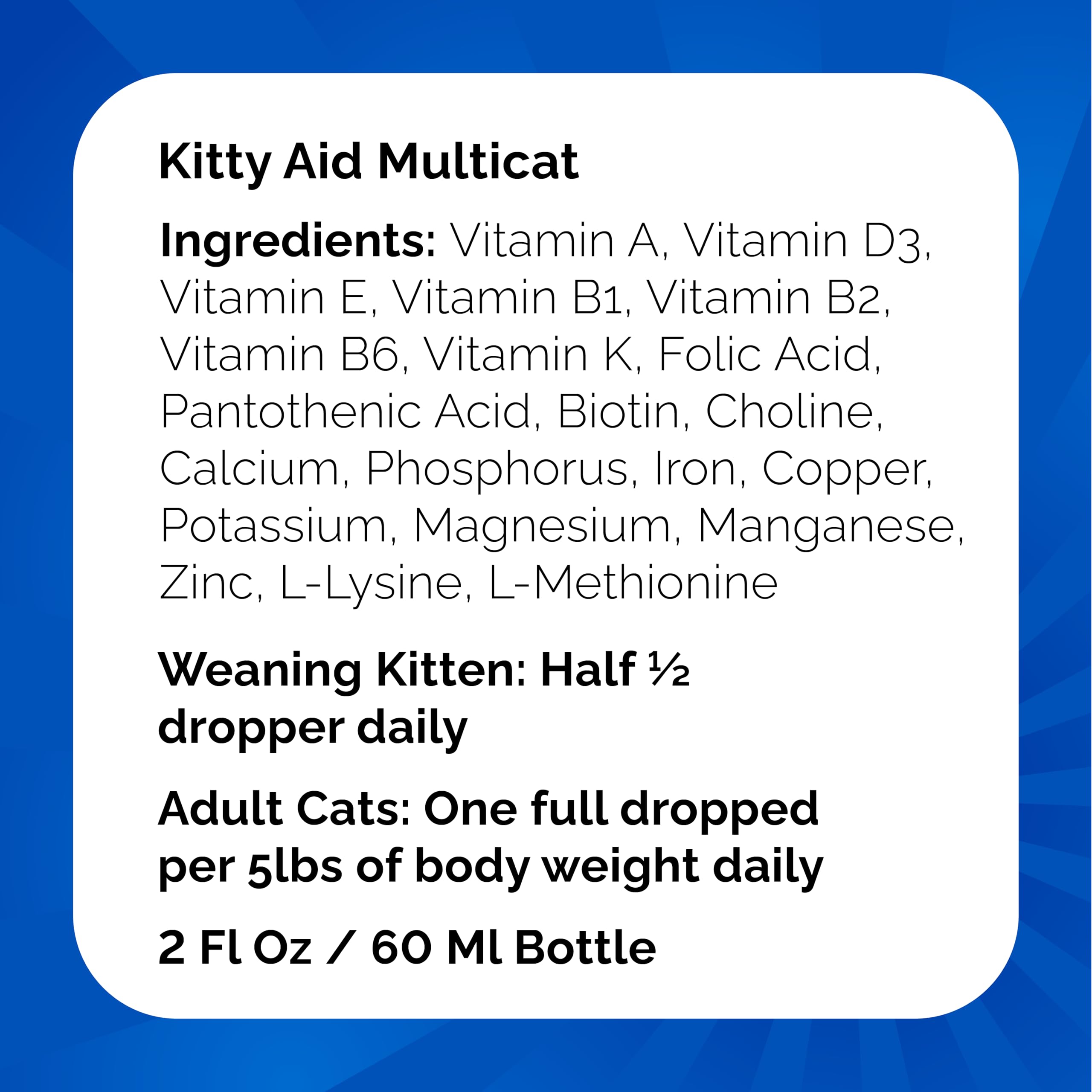 LIQUID SUPPLEMENT OF VITAMINS, MINERALS, AND AMINO ACIDS FOR WEAK KITTENS. EFFECTIVE RECONSTITUENT OF THE LIVER, BLOOD, AND IMMUNE SYSTEM. STIMULATES APPETITE AND DEVELOPMENT IN YOUNG CATS. VERY USEFUL IN RECOVERY STATES FROM TRAUMAS, SURGERIES, INFECTIONS, AND SEVERE STRESS.