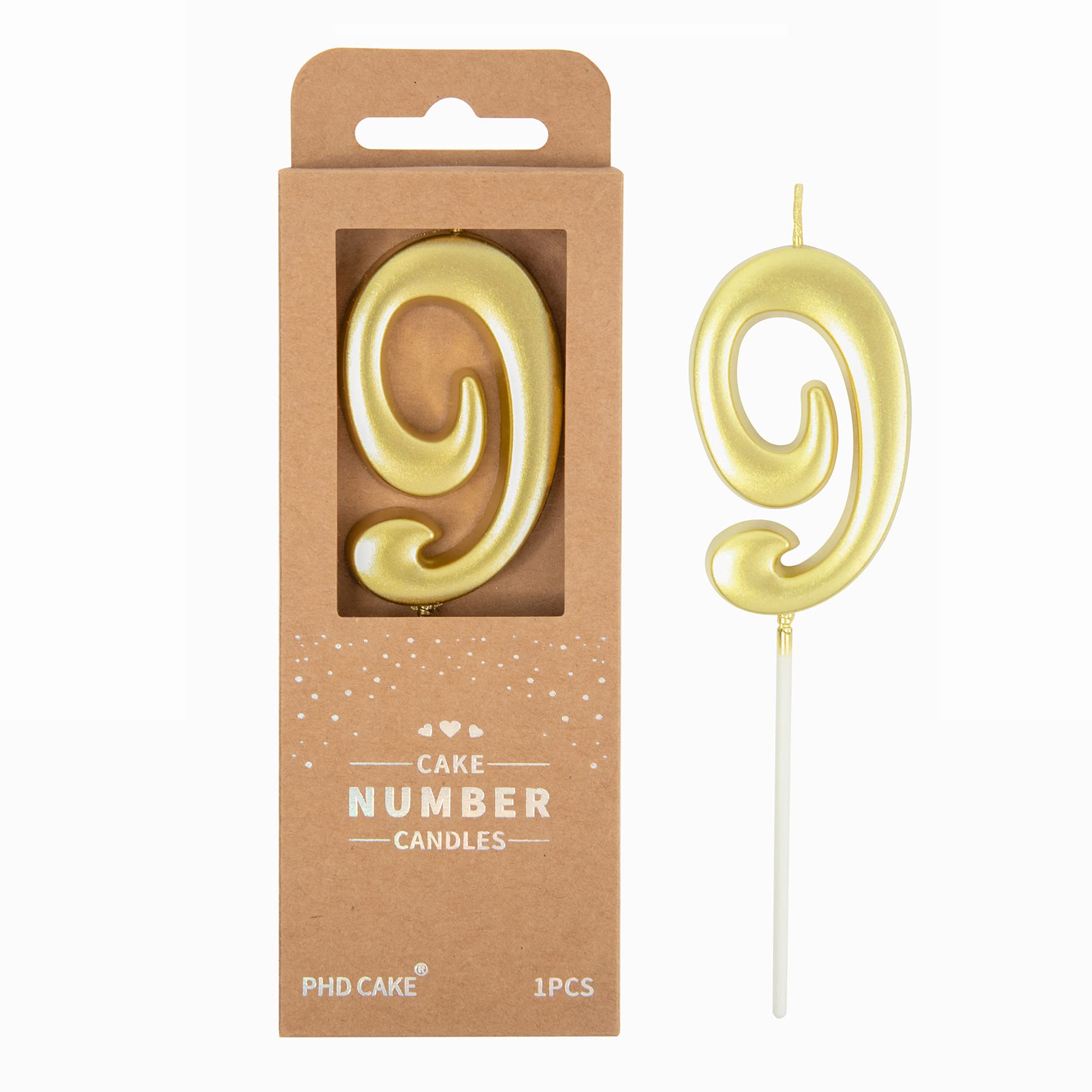 New: 2.76 Inch Large Elegant Gold 9 Number Birthday Candle designed to make your cake and birthday a unique and truly inspiring event.