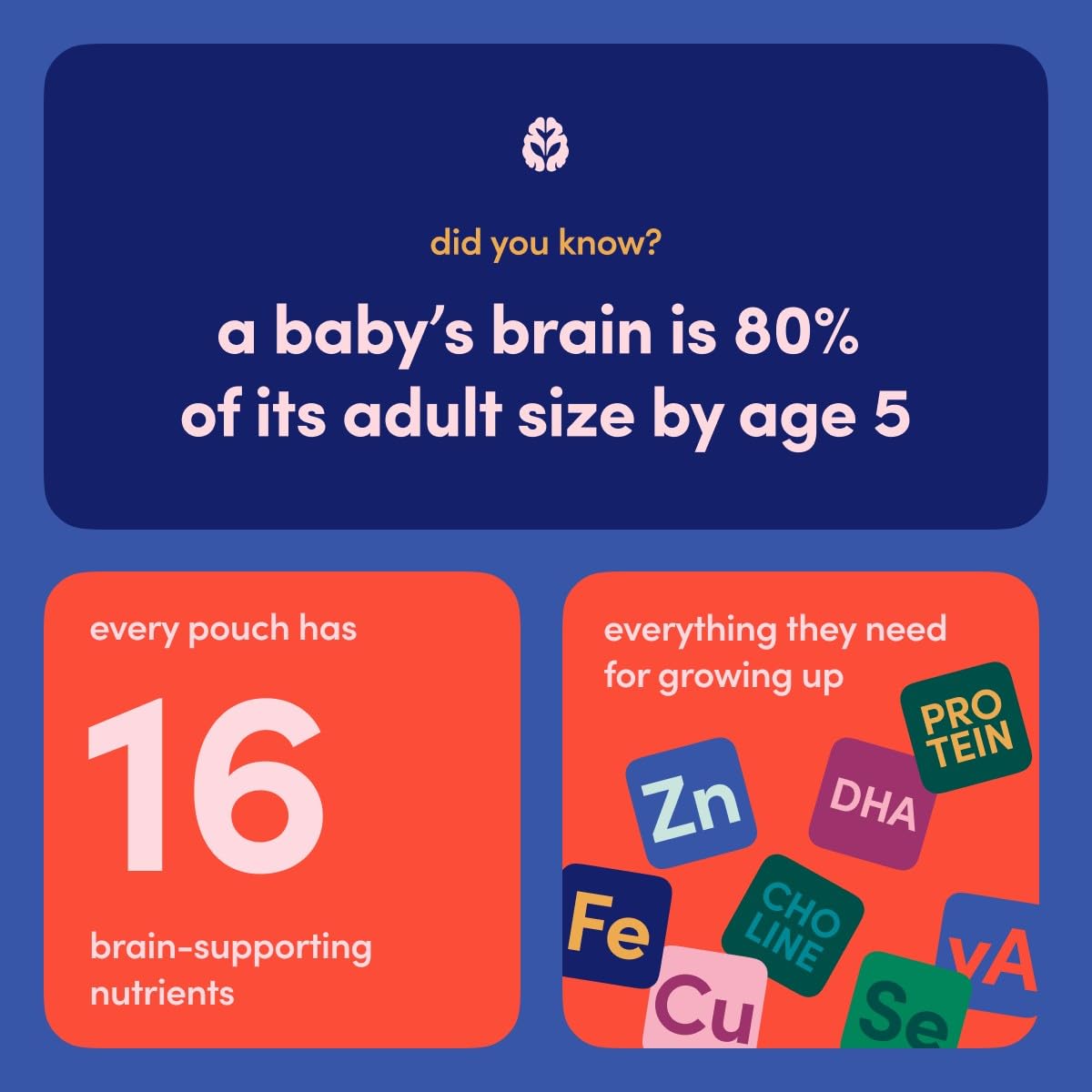 16 BRAIN-SUPPORTING NUTRIENTS β Baby pouches with potassium, iron & vitamin A to fuel healthy brain and body development