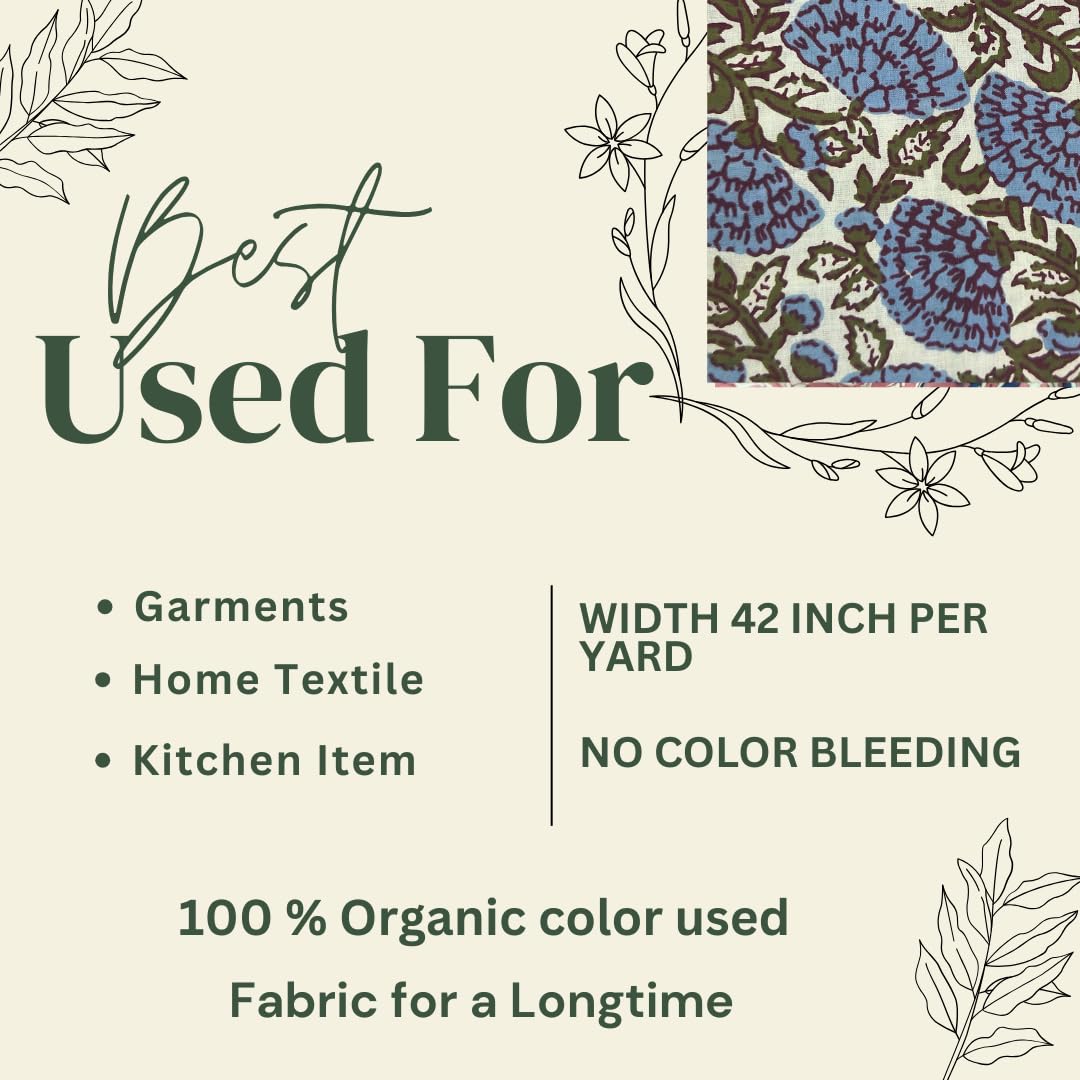 Hand Block Print Fabric by The Yard - PRECUT Available in 1 Yard, 3 Yards, 5 Yards 42 Inch Width Material: 100% Cotton Width: 42 Inches Length: 3 Yards (Precut) Weight: Light Weight Pattern: Greyish Blue Floral Craft: Hand Block Printed Origin: Made in India Usage: Ideal for making summer dresses, tops, and other light clothing projects. Description: This beautiful hand block print fabric is crafted with love and care using traditional Indian techniques. The fabric features a stunning greyish blue floral pattern on a light background, perfect for creating stylish and comfortable summer garments. Made from 100% cotton, it is breathable, soft, and easy to work with. The fabric's light weight ensures it drapes well and is suitable for a variety of clothing items, including dresses and tops. Features: Hand Block Printed: Each design is carefully carved onto wooden blocks and printed by hand, giving the fabric a unique and authentic touch. 100% Cotton: Ensures breathability and comfort, making it perfect for warm weather clothing. Light Weight: Ideal for summer garments that require a light, airy feel. Greyish Blue Floral Pattern: Adds a touch of elegance and sophistication to any outfit. Made in India: Reflects the rich cultural heritage of Indian textiles. Care Instructions: Wash in cold water to preserve the vibrant colors and texture. Gentle machine wash or hand wash recommended. Perfect for: Summer dresses Tops Blouses Kurtis Scarves Home decor projects Order Now and bring a touch of traditional Indian craftsmanship to your next sewing project! This description highlights the fabric's unique features, usage, and care instructions, making it appealing to potential buyers on Amazon.
