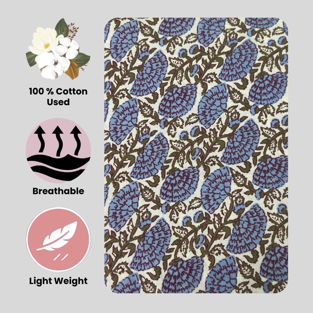 Hand Block Printed: Each design is carefully carved onto wooden blocks and printed by hand, giving the fabric a unique and authentic touch.