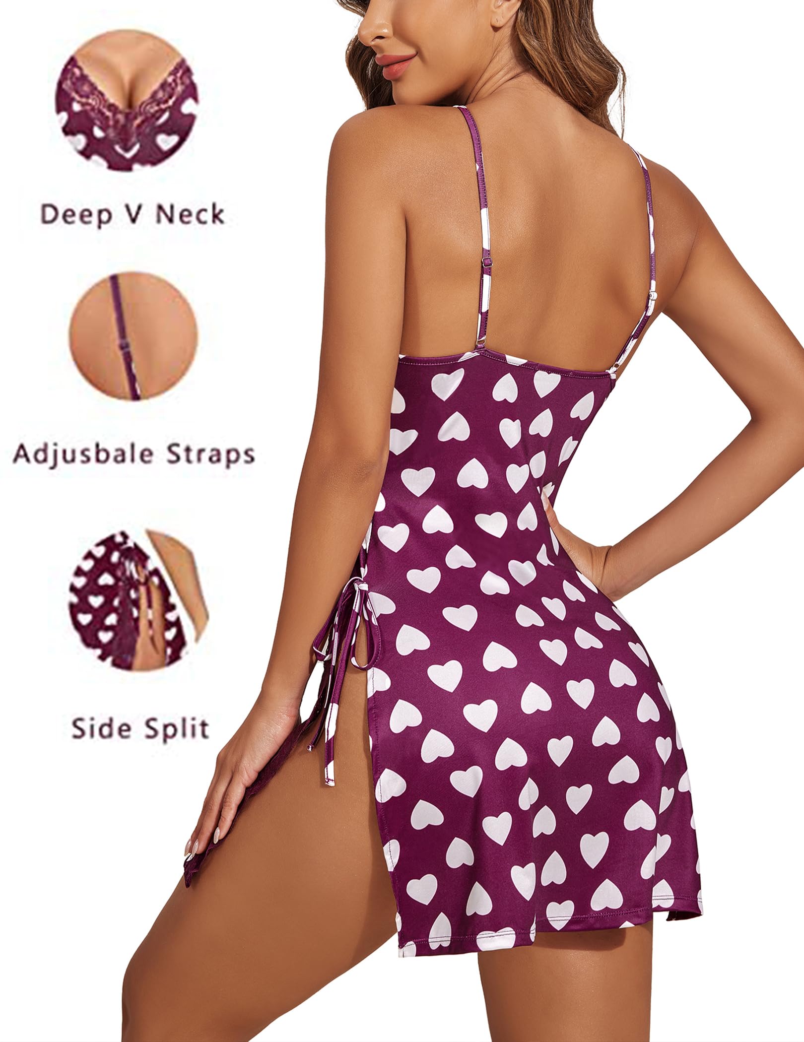 Features- Slip lingerie features a lace patchwork Deep V neck, adjustable spaghetti straps and side slit with tie closure.Seductive to draw your lover's attention