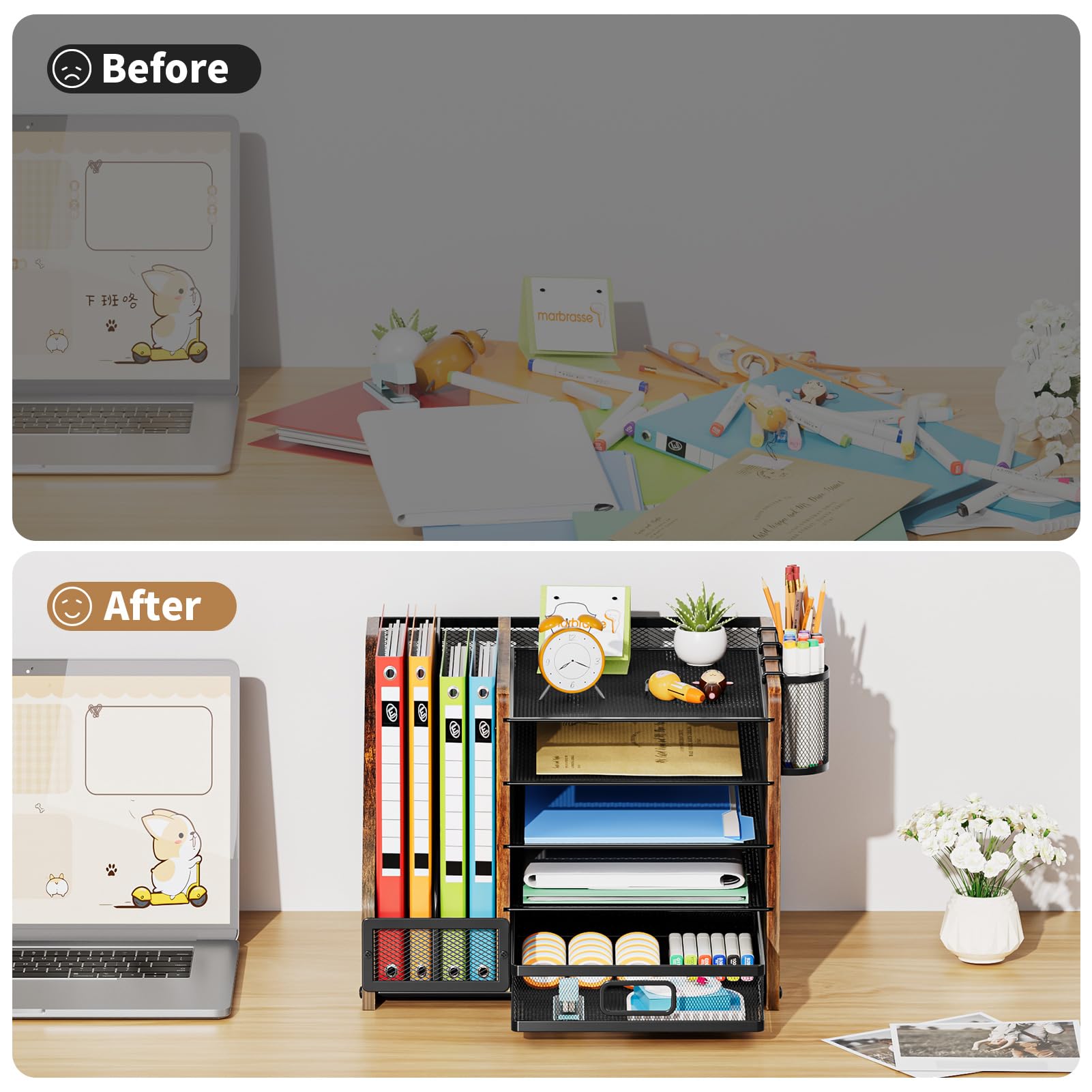 Unique Design:Marbrasse exclusive design of the all-in-one desktop file organizer be certain to bring our customers more convenience in the office and be popular in our daily life. We offer a 90-day return policy. You take NO RISK by ordering today! (USPTO Patent Number: D982080)