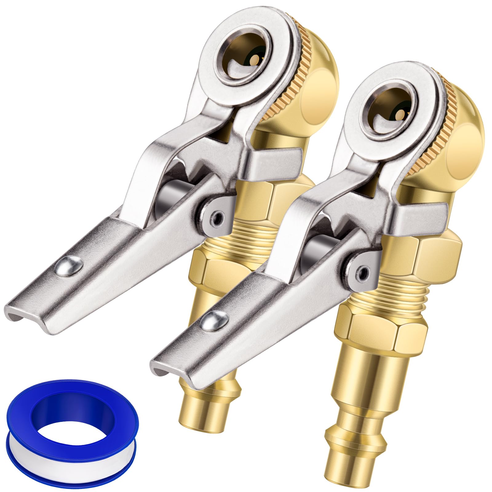 AIR TANK HOSE - 4 feet PVC air tank hose with both brass ends that is rust resistant and seal better than aluminum, steel, or zinc. The one end is equipped with a 1/4" (F) NPT tire chuck and the other end is 1/4 inch MNPT Thread. Max working pressure: 300 PSI.