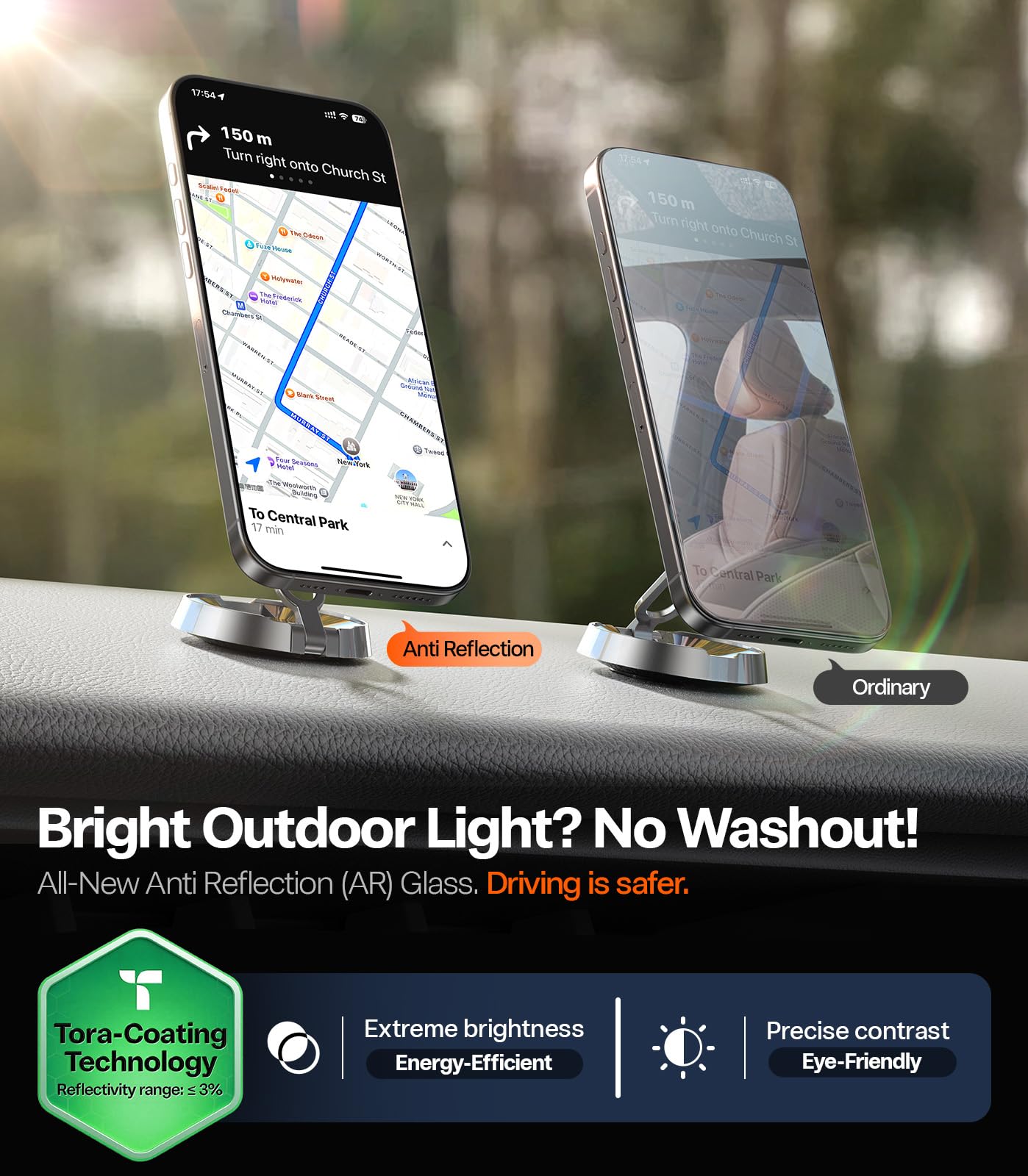 【All-New Anti Reflection (AR) Glass, Extreme Clarity.】Tora-Coating Technology, achieved via high-precision nano-coating, ensures extreme brightness and precise contrast — even under bright outdoor light, no washout! With a reflectivity range of ≤ 3%, you’ll see navigation clearly, so no need to worry about driving risks.