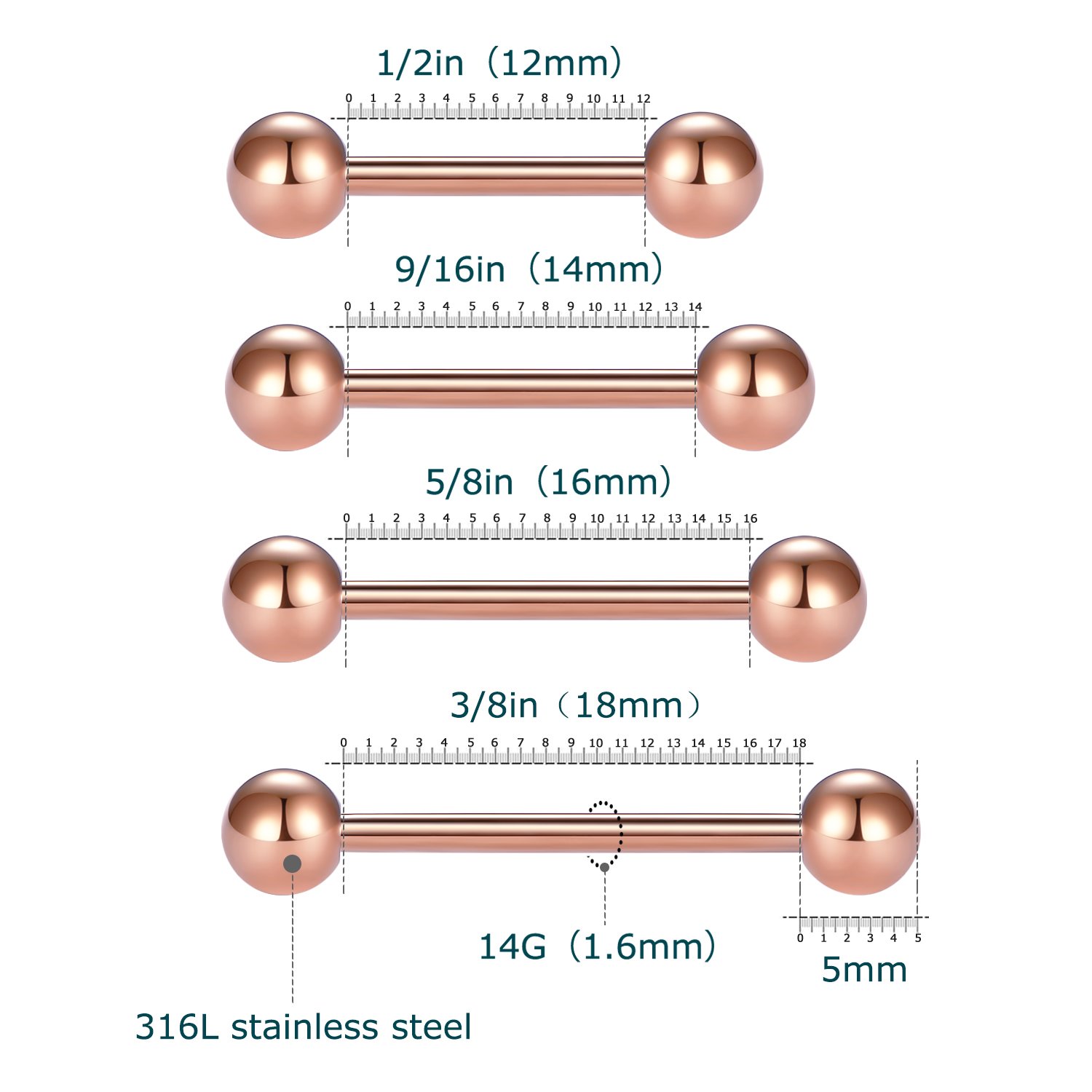 Piercing Type:each pack piercing barbell include 4 different length-12mm,14mm,16mm,18mm,serve as nipple rings,tongue rings,belly bar ring,cartilage piercings earrings etc