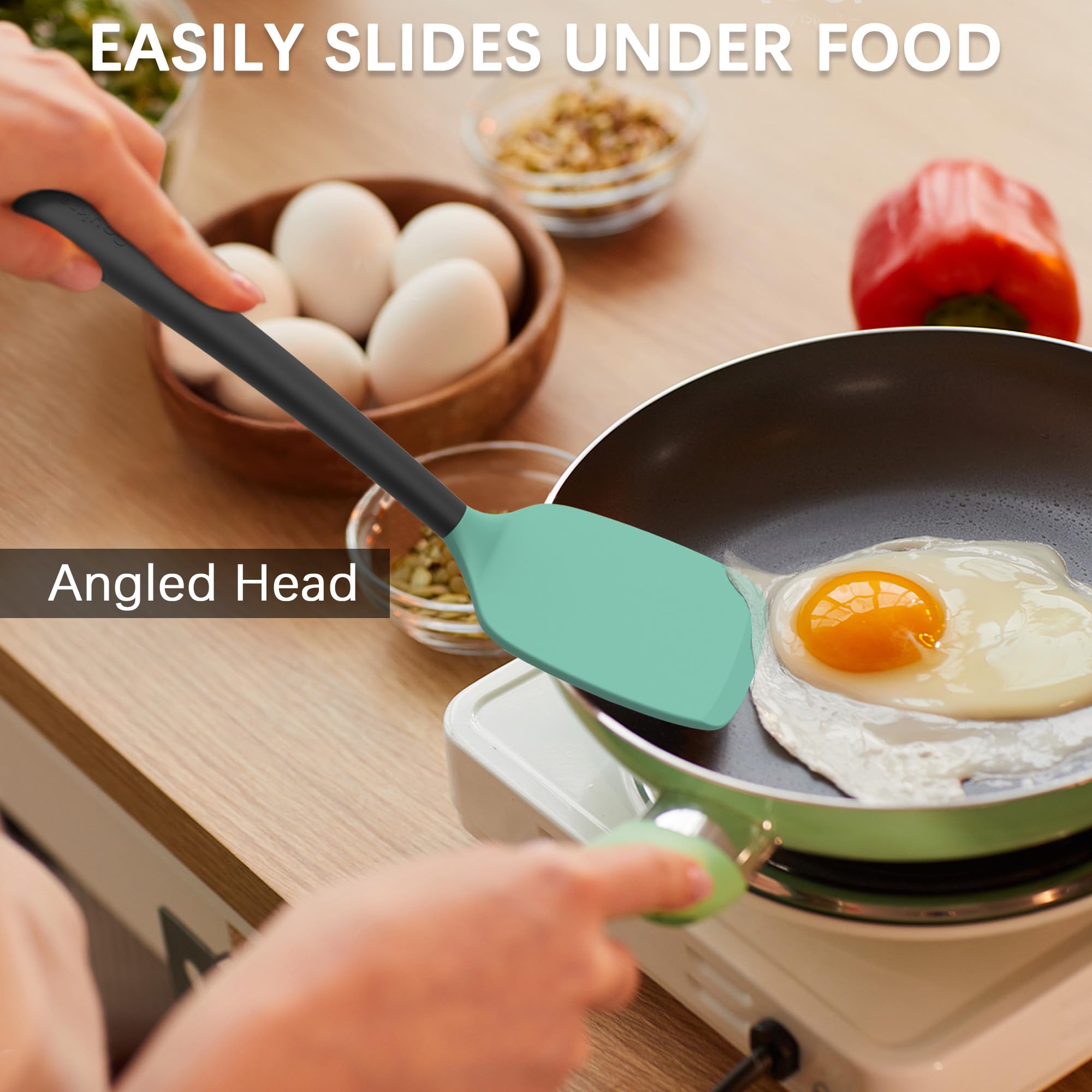 [Sturdy Yet Flexible]: The kitchen spatula turner set features a reinforced nylon core, a silicone handle that makes the grip more comfortable, and the flexible head provides precise control, making flipping and stirring easier