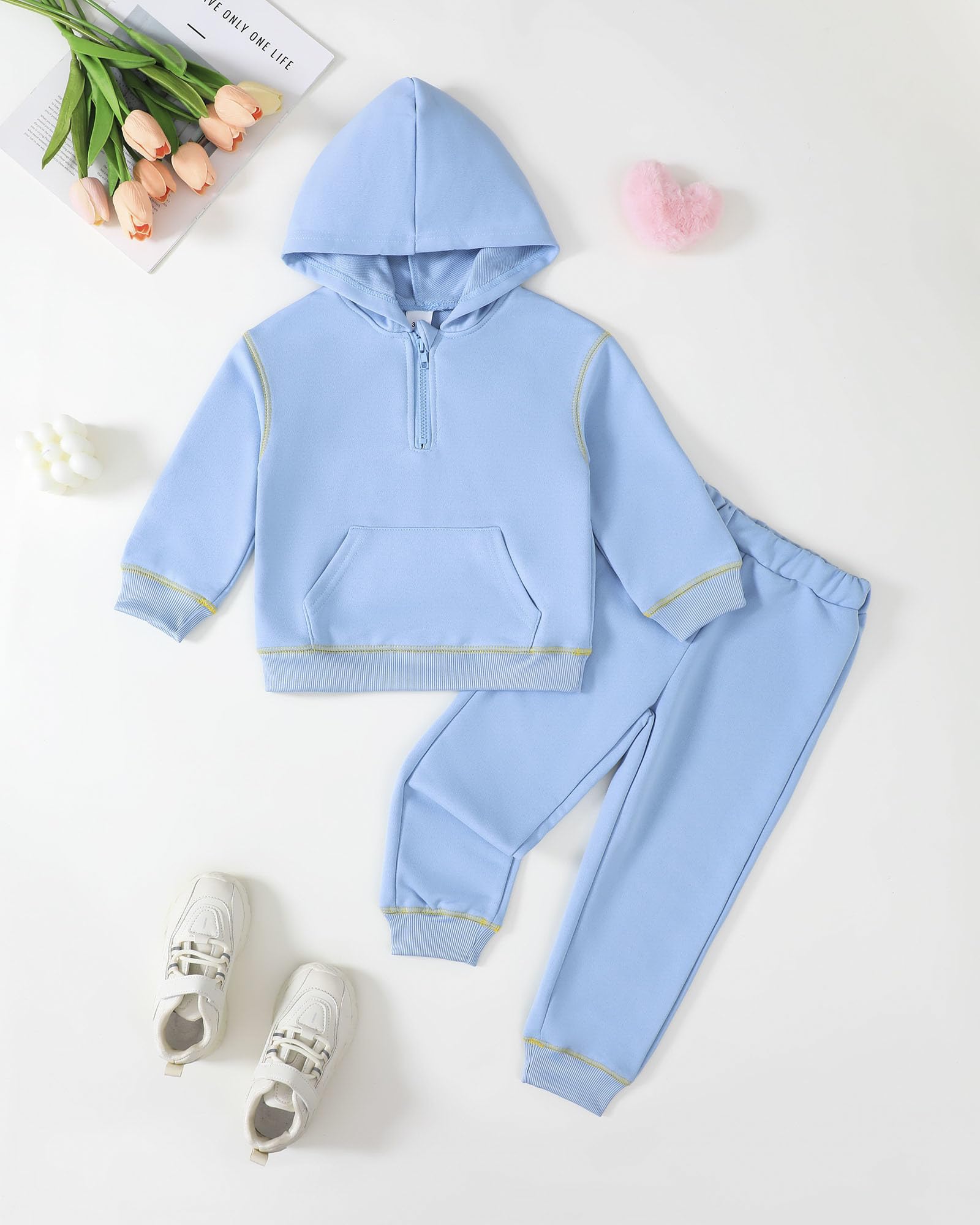 Easy to Dress & Move:Hoodie with half-zip design and stretchy pants make dressing hassle-free. Allows freedom of movement for active toddlers.