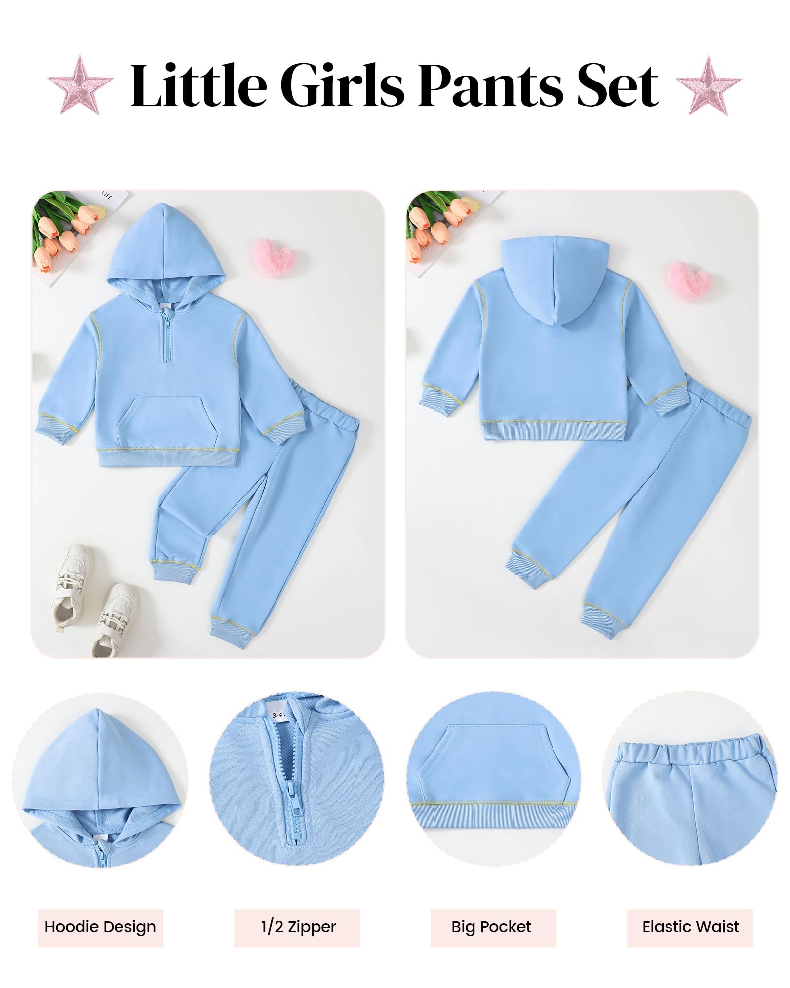 Versatile for Occasions:Great as a birthday gift for little girls aged 3-8, back to school outfit, picture day oufits, cute fall/winter outfits, sweatsuit, or jogger set. Suitable for daily wear, sportwear, activewear, parties, and photoshoots.