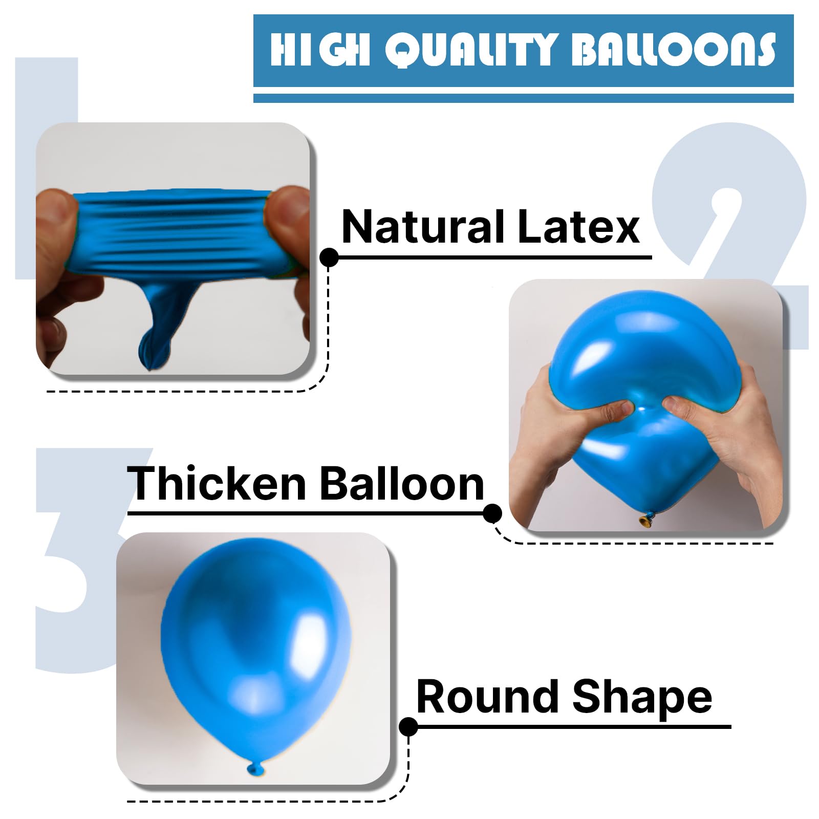 50 PCS BLUE BALLOONS SET: The package comes with 12 inch blue metallic balloons (50 pcs), whose colors are super metallic, vibrant and bright. Use these balloons to liven up the birthday, baby shower, party, wedding