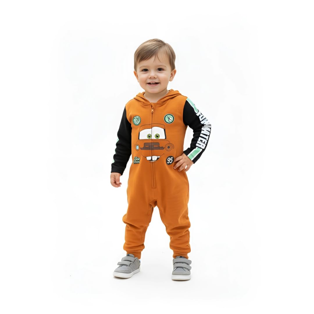 Description Rev up your little boys style with our Officially Licensed Disney Pixar Cars Tow Mater Boys Hooded Coverall, the ultimate must have Cars outfit for toddler boys who love the action packed world of Disney Cars. Inspired by Lightning McQueen loyal and hilarious sidekick, this Tow Mater toddler coverall comes in a rich brown design with authentic details on the sleeves and body, topped with a fun hood for that race ready look. Best as everyday Disney toddler clothes for boys, this Cars boys outfit is crafted from soft, breathable, and durable fabric to keep your child cozy, comfy, and free to play at daycare, on playdates, or at Cars birthday parties. Parents will love the easy care, machine washable Disney coverall, making cleanup quick and stress free. This adorable Cars coverall for toddlers is available in toddler boys clothes sizes 2T, 3T, 4T, and 5T, offering the best fit for growing racers. Pair it with Lightning McQueen jacket, Cars socks, Disney slippers, Tow Mater shoes, or Cars birthday party decorations for a complete Pixar inspired look. Whether he is headed to school, a playdate, or celebrating in Cars birthday outfits for boys, your little racer will feel cool, confident, and adventure ready in this standout Disney Cars Tow Mater coverall, a must have addition to any toddler boys Cars clothing collection.