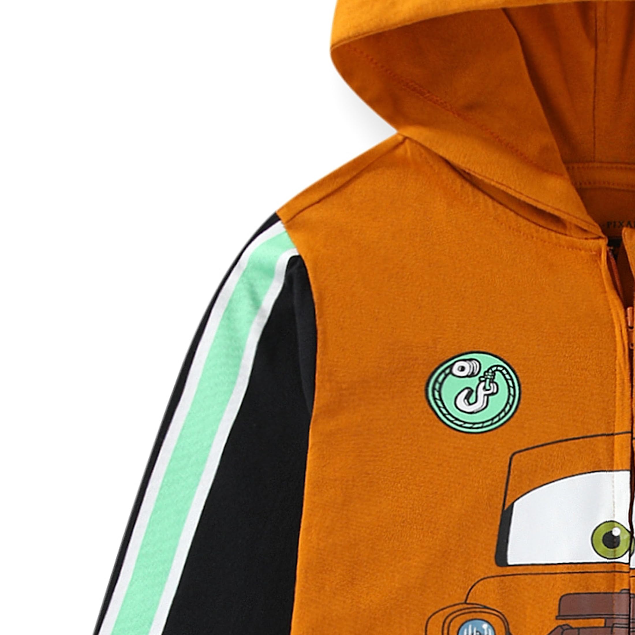 Inspired by Lightning McQueen loyal and hilarious sidekick, this Cars Tow Mater coverall comes in a rich brown design with authentic details on the sleeves and body, topped with a fun hood for that race ready look.