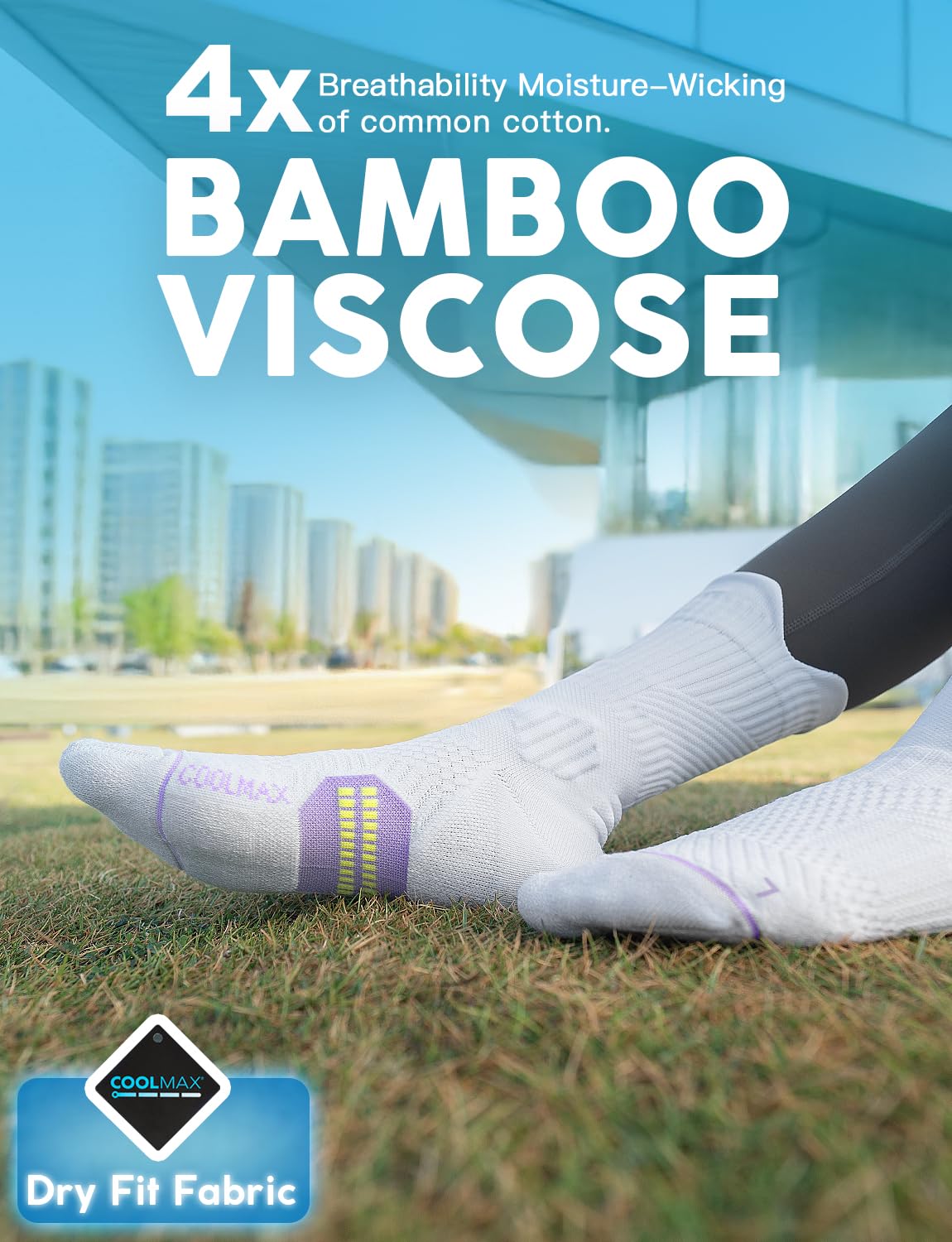 【Stay Cool, Stay Confident】 Bamboo Viscose + Coolmax blend excels at moisture-wicking, keeping feet dry through HIIT workouts or humid trail adventures. Bamboo viscose naturally resists odors and wicks moisture for daylong freshness—ideal for high-intensity cycling classes or post-jogging errands.