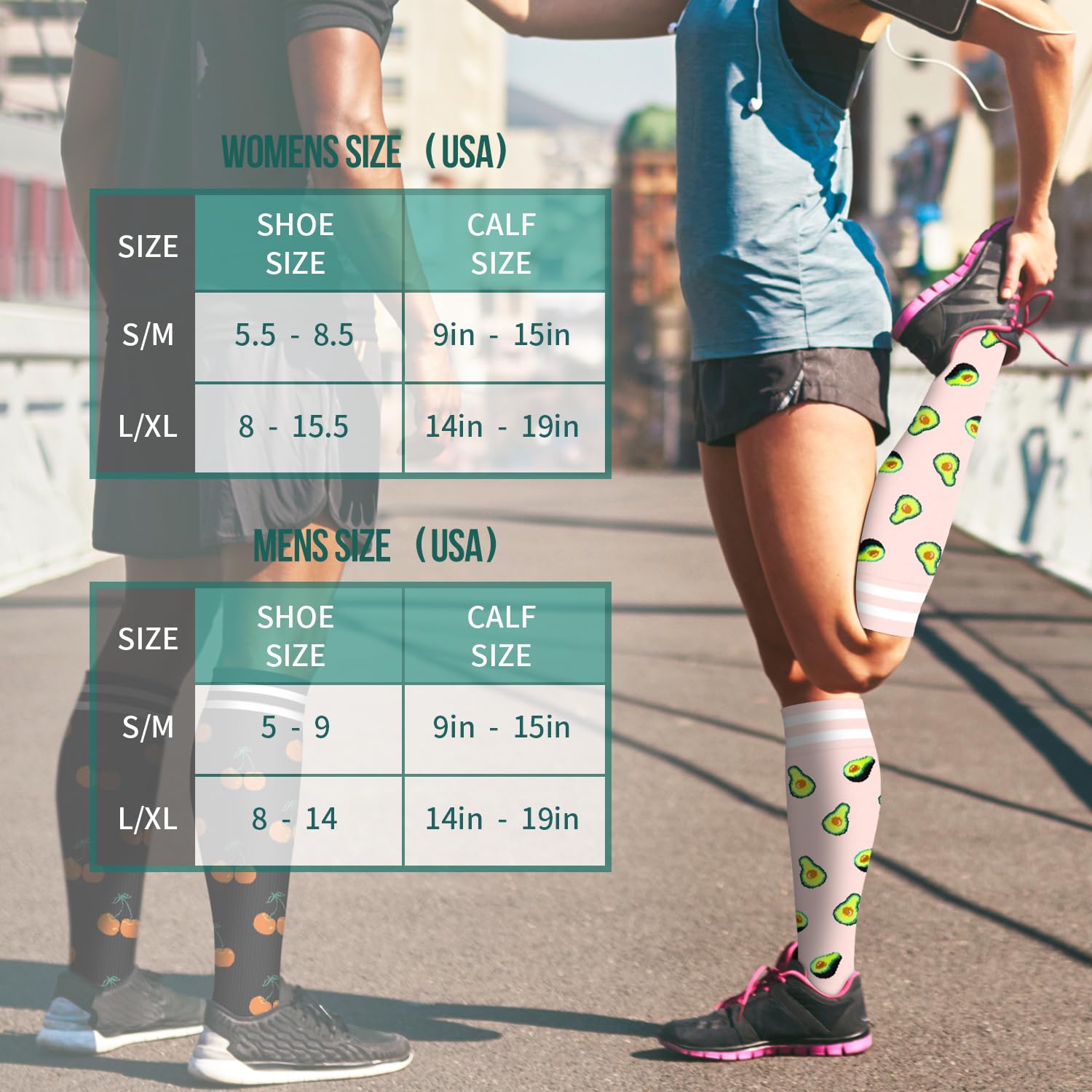 LAB TESTED GRADIENT COMPRESSION -Our Graduated Compression Socks put pressure in just the right spots,work by creating a "pressure gradient"(using graduated compression of 15-20 mmHg)which helps to push oxygen-poor blood out of the feet and legs,and back to the heart. More blood pumping means more Healthier legs and less pain+swelling.Great for long periods of sitting or standing, endurance sports, flying and travel, post-workout recovery, pregnancy, and spider & varicose veins.