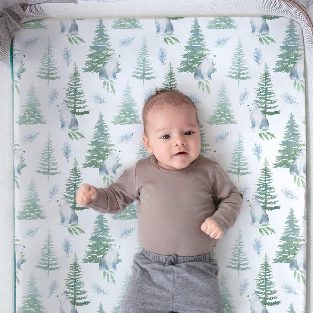 BREATHABLE MINI CRIB SHEETS FOR NEWBORN & INFANT: Crafted with breathable materials, these Pack and Play sheets help regulate your baby's temperature, ensuring a comfortable sleep all night long. Perfect for moms and parents who want a safe and eco-friendly option for their baby boy or girl, whether in the nursery, during travel, or at daycare.
