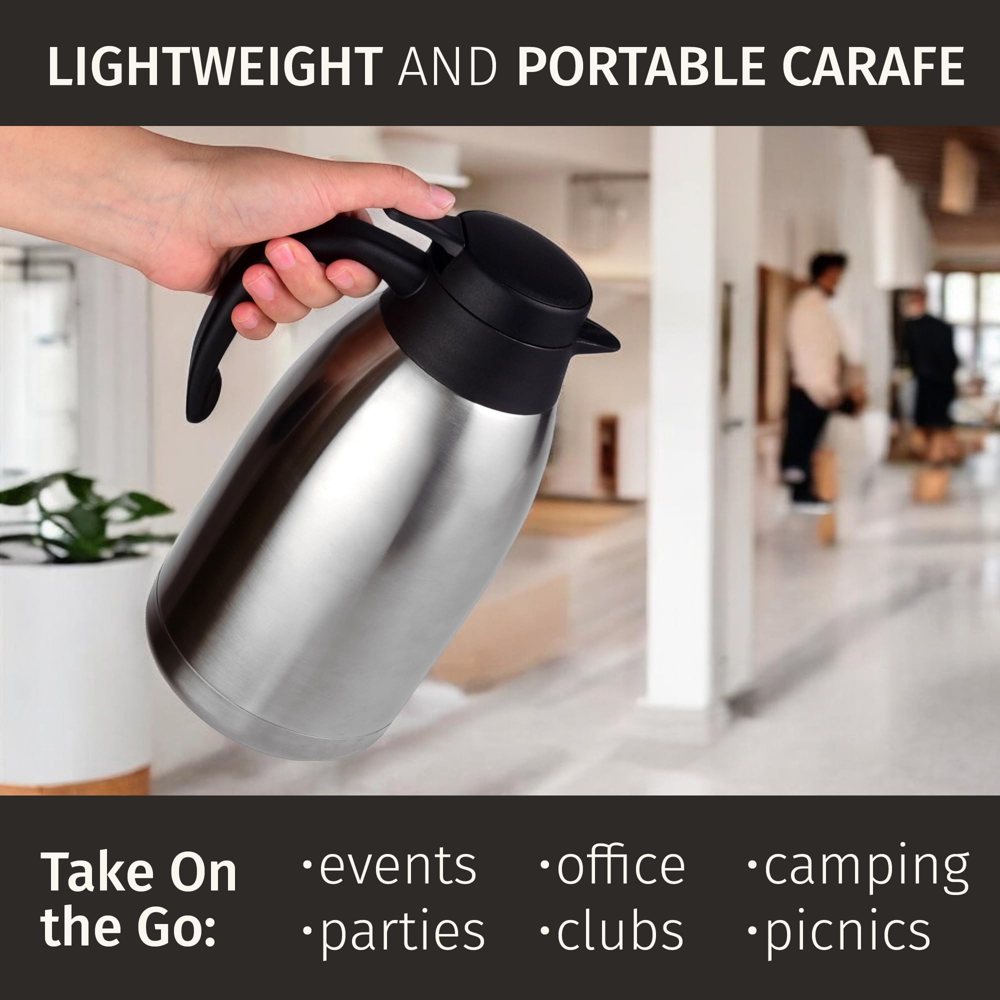 HOT OR COLD COFFEE CARAFE INSULATED » Cresimo's lab- tested vacuum insulation technology locks in temperature for 12 hours hot or 36 hours cold. Your new insulated carafe will stay hot. Tip: It's also a great hot chocolate dispenser!