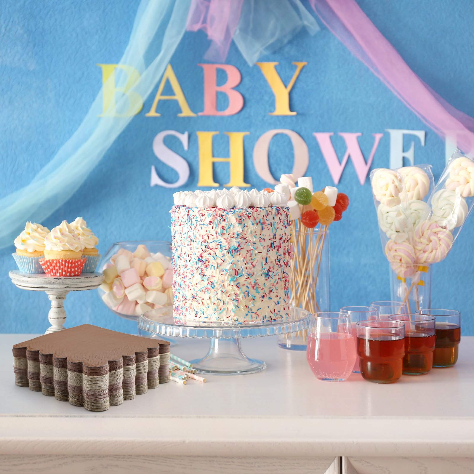 Versatile and Comfortable: meticulously made from a paper material, these baby shower napkins exhibit magnificent water and grease absorbance capabilities; Not only are they resistant to breakage but also gentle to your skin without causing any form of discomfort; Mitigate the burden of cleaning by integrating these napkins into your dining supplies and enjoy the excellence of functional elegance
